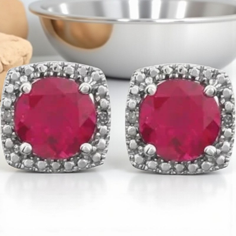 Beyond its association with July, the beauty of the ruby transcends birth months, offering its radiant glow to all who appreciate its timeless elegance. These exquisite ruby and .015 CTW diamond stud earrings effortlessly elevate any ensemble, whether paired with casual attire or donned for a glamorous evening affair.