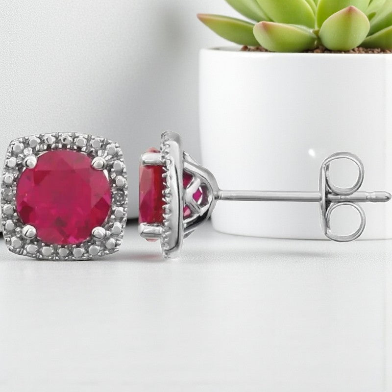 Fiery Whispers: Ruby and .015 CTW Diamond Stud Earrings