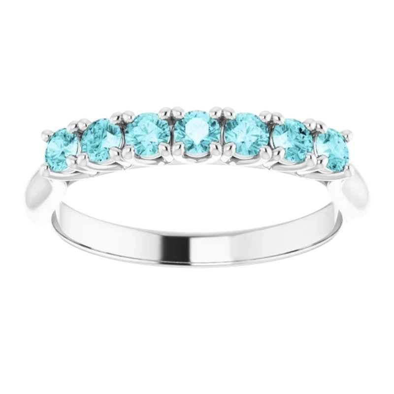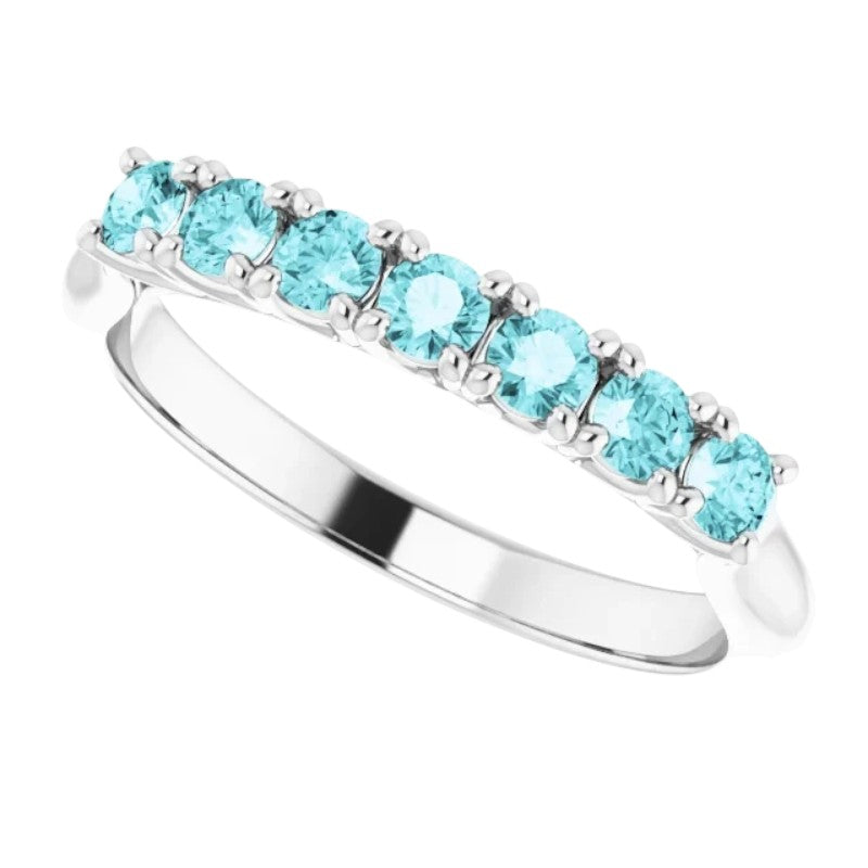Genuine Blue Zircon 7 Stone Ring in 14k White Gold