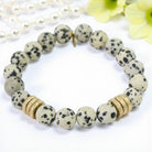 The Brushed Gold Rings add an element of elegance and sophistication to the bracelet, symbolizing strength and resilience. Together with Dalmatian Jasper, they create a harmonious blend that fosters a peaceful and balanced state of mind.