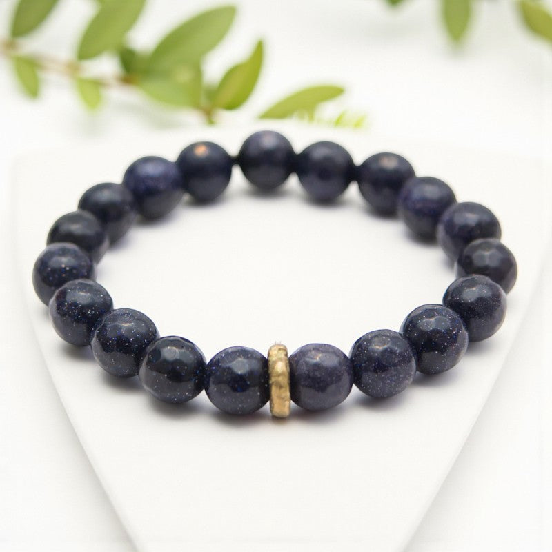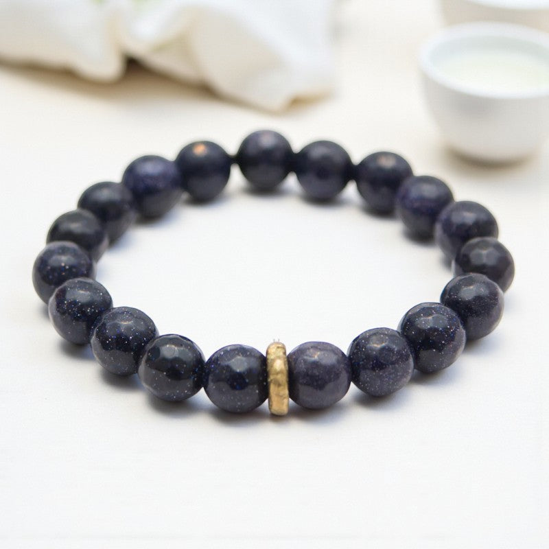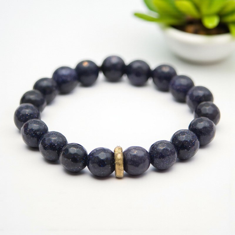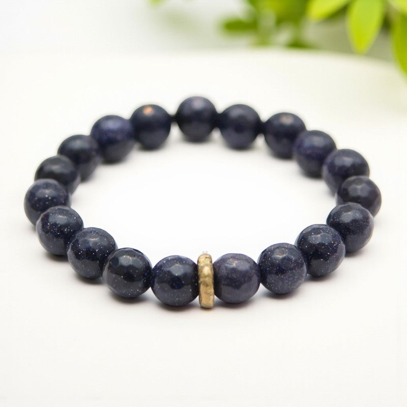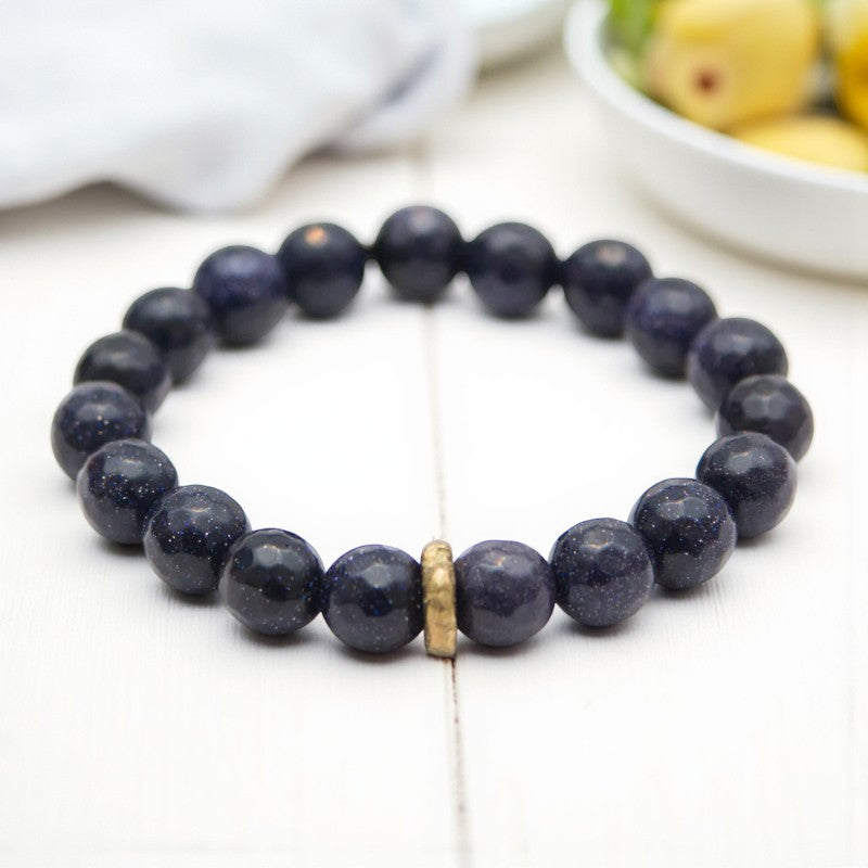Goldstone Crystal Bracelet with Navy Blue and Brass Ring Accents