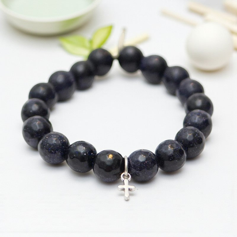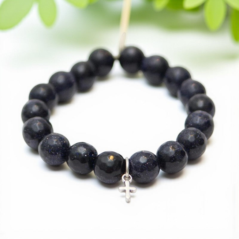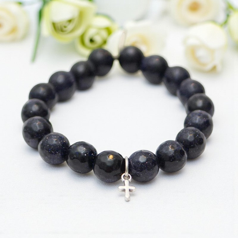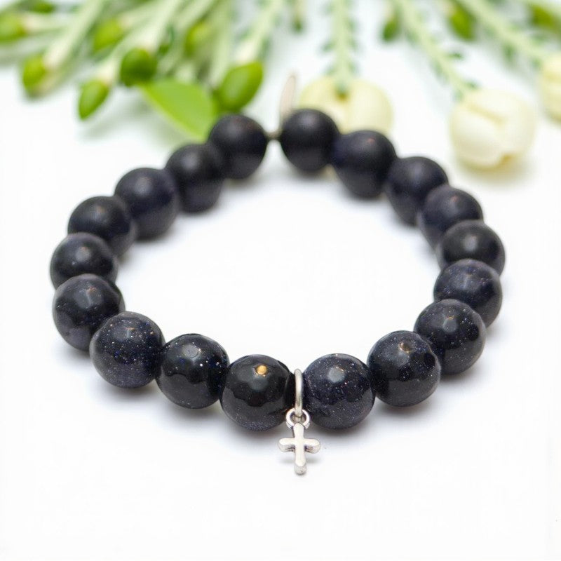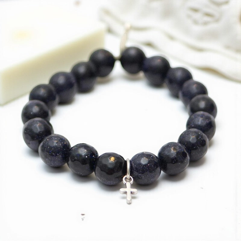 Goldstone Crystal Bracelet with Navy Blue and Silver Cross Accents