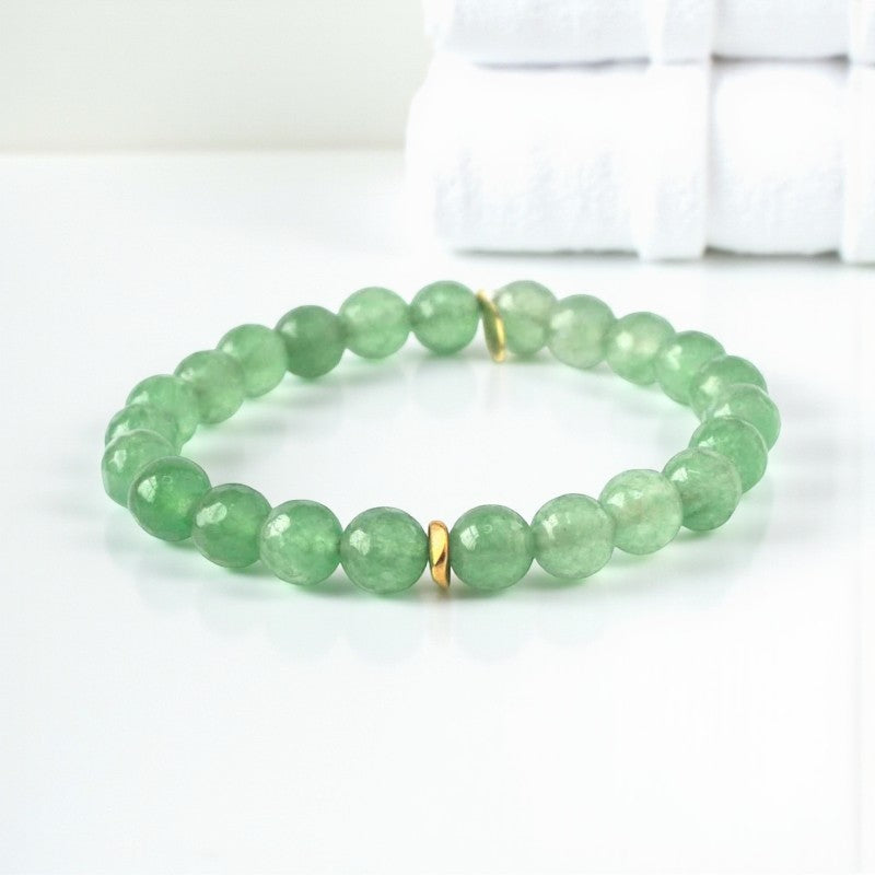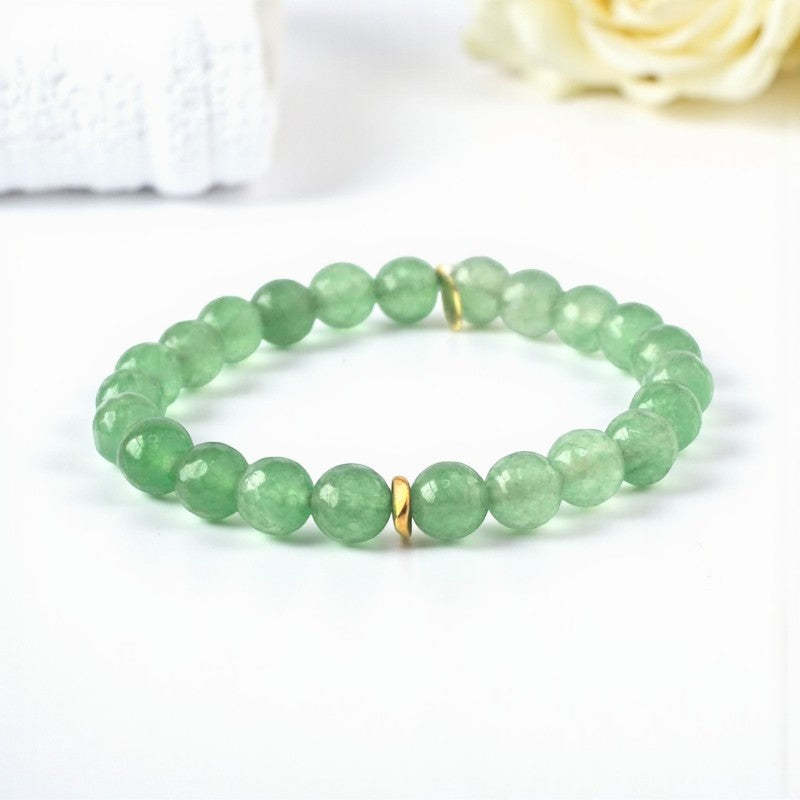 Embrace the harmonious energies of the 8mm faceted green jade bracelet adorned with brass heishi beads. This listing is for one bracelet, crafted with care to bring serenity and balance into your life.
