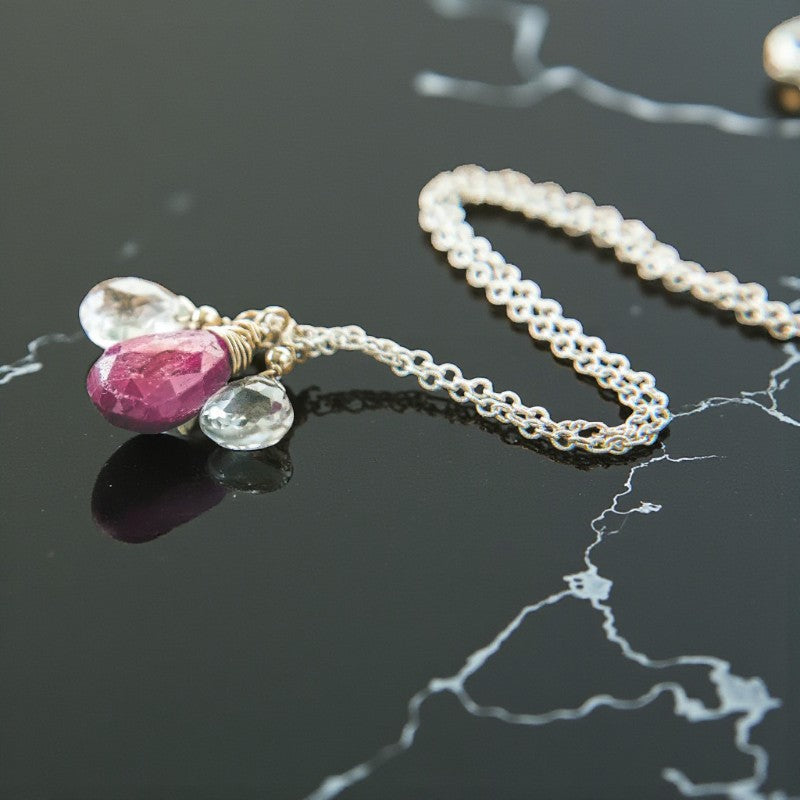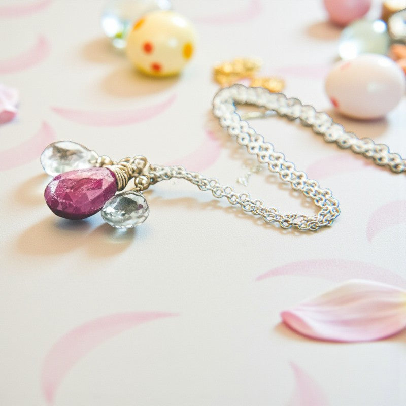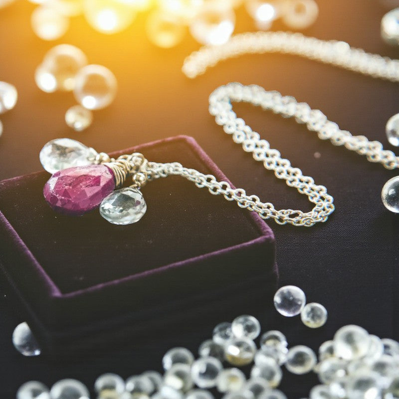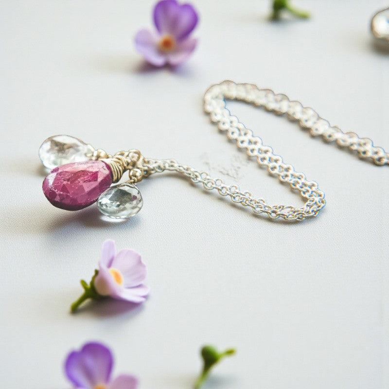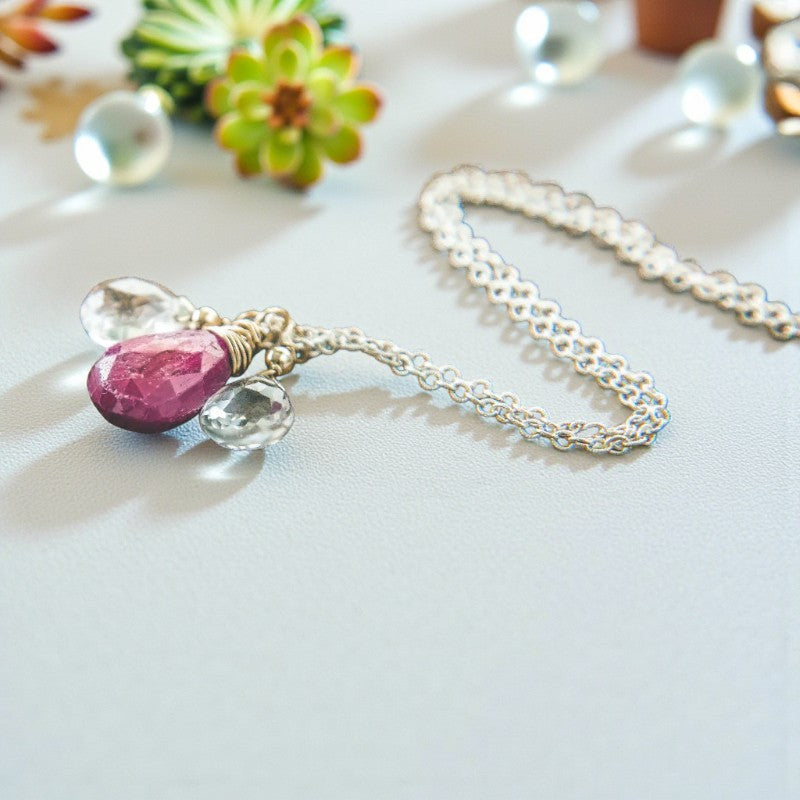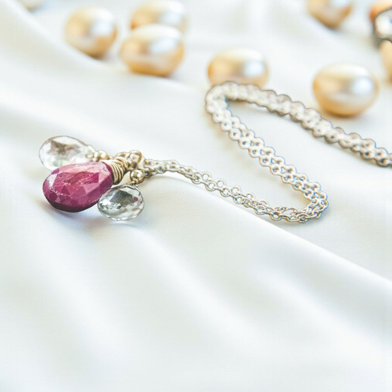 Embrace elegance and grace with this captivating Ruby and Quartz Crystal pendant necklace.