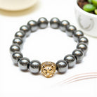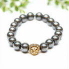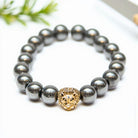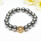 Gunmetal Hematite Bracelet with Gold Lion Accent