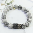 The Gray Jasper Bracelet with Lava Barrel and Gunmetal Rings is a symbol of strength and self-care. Gray Jasper, with its calming and nurturing energy, promotes a sense of wholeness and compassion, guiding the wearer towards tranquility and emotional balance. This stone acts as a shield against negative energies and electromagnetic disturbances, ensuring the wearer's well-being and inner harmony.