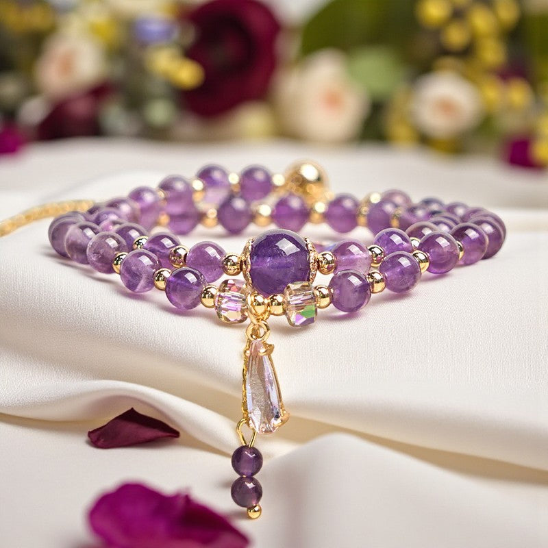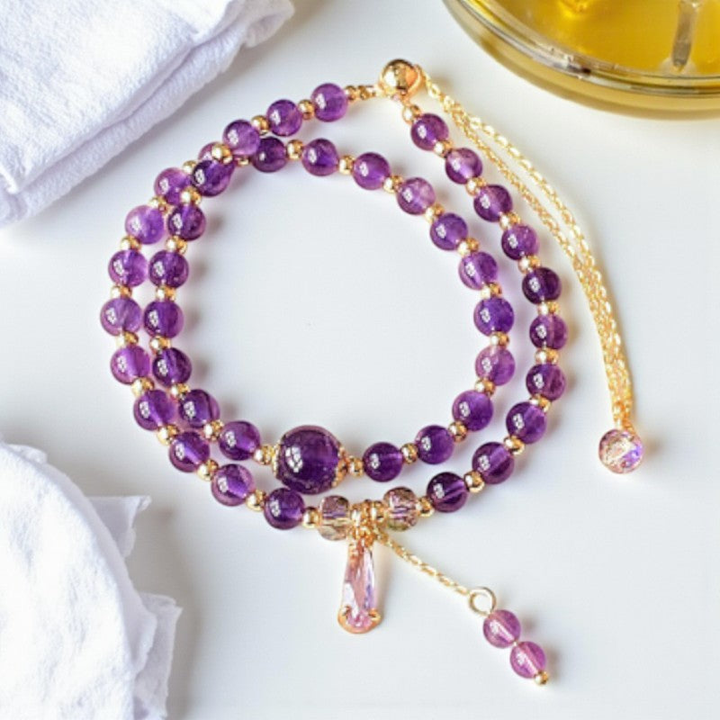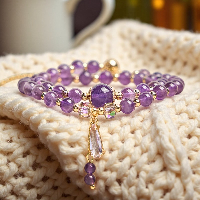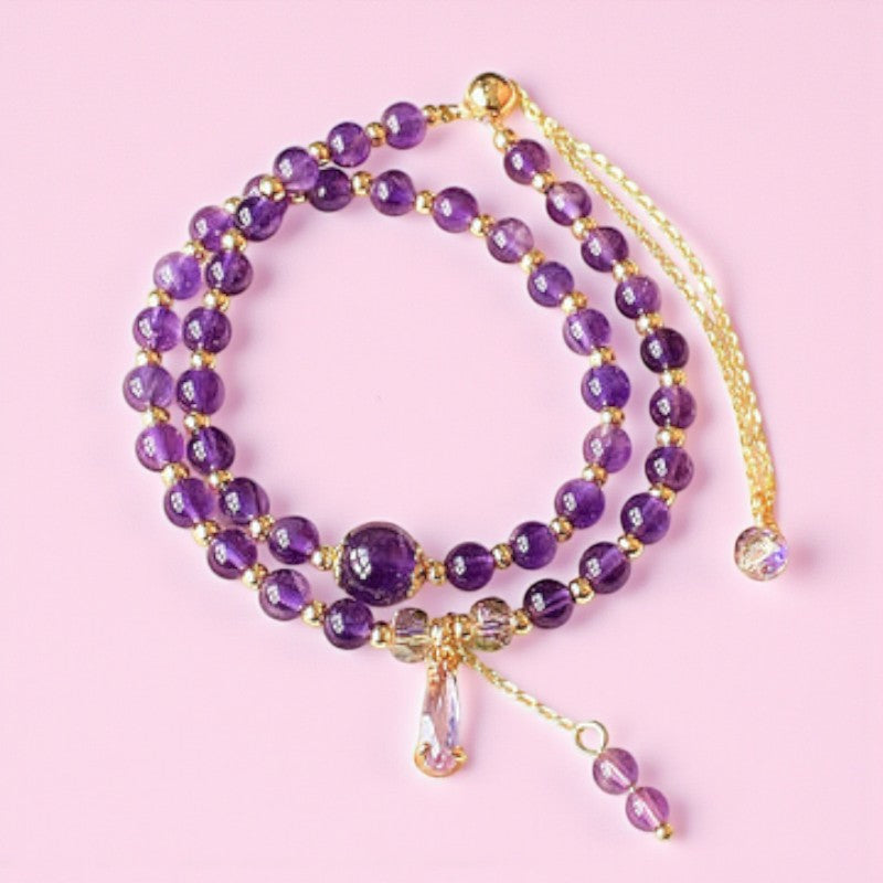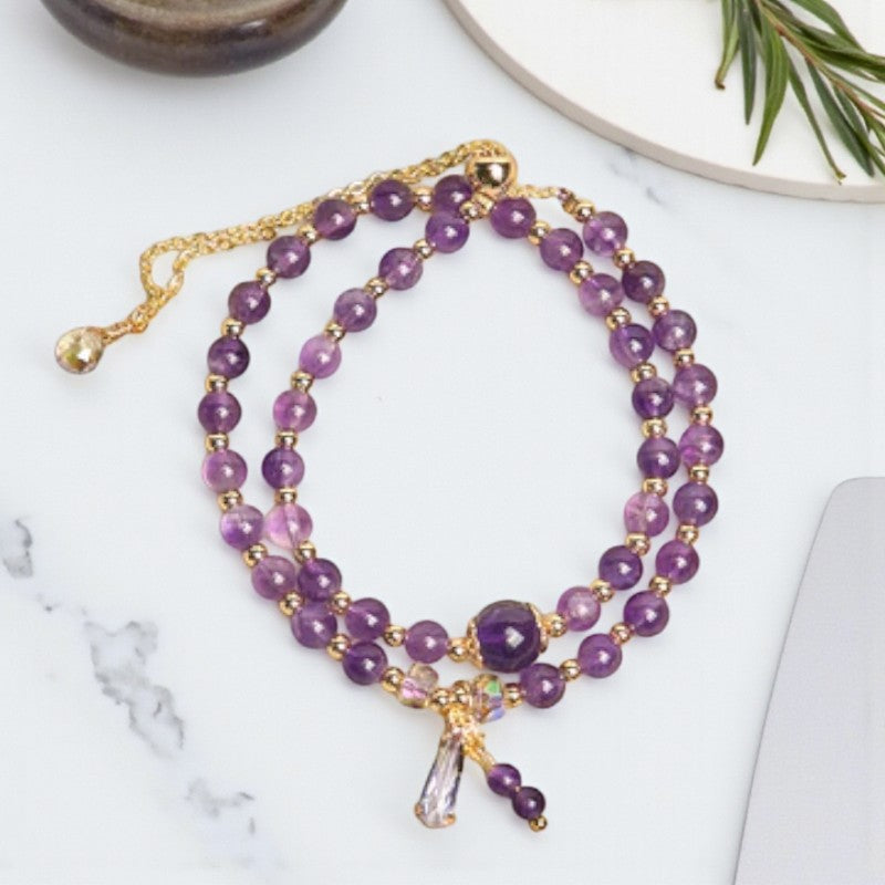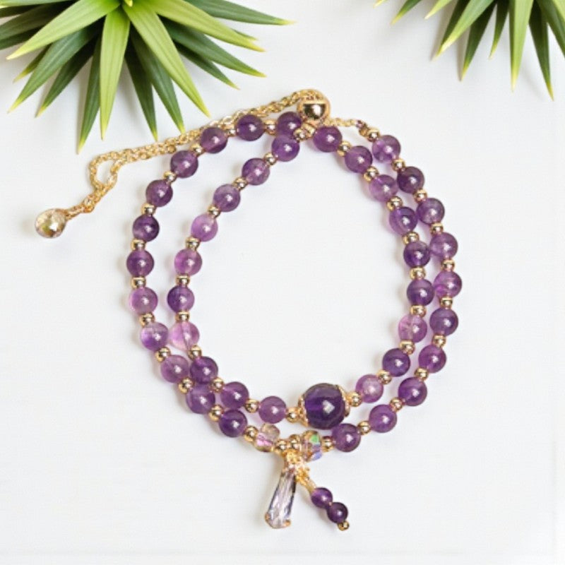 Handcrafted Multi-layer Bracelet with Natural Amethyst Beads