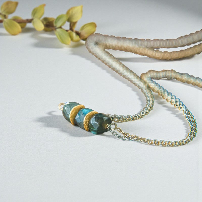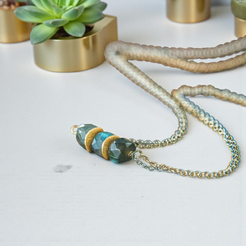 - The centerpiece of each necklace boasts three faceted Labradorite rondelle gemstones of the highest AAA grade quality, ensuring a luxurious touch.