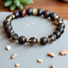 The deep, resplendent hues of the red garnet, intertwined with the dynamic shimmer of red tiger eye and the understated elegance of smoky quartz, render this bracelet a masterpiece of artistry. Enhanced by the opulence of gold accents, this bracelet transcends mere ornamentation, serving as a powerful spiritual talisman and a breathtaking adornment that complements any ensemble.