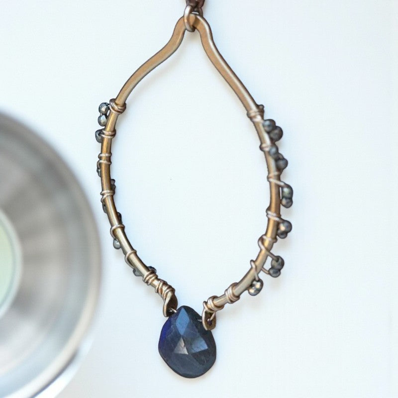 Materials: 14k gold filled wire, gold french ball ear wire and gold frame