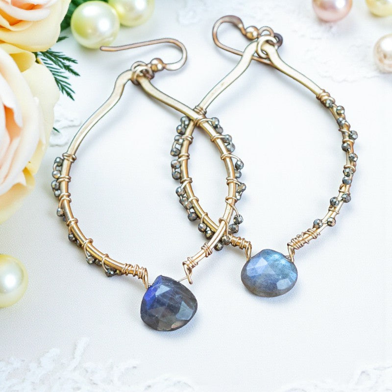 Beyond their aesthetic appeal, these earrings are infused with the energetic essence of their gemstones. Moonstone, known as the "stone of new beginnings," is thought to bring clarity, balance, and protection to the wearer. Its mystical hues symbolize hidden strengths and intuitive wisdom, offering a sense of calm and insight amidst life's transformations. Each glimmer reveals a facet of its enchanting nature, making it a deeply personal and empowering stone.