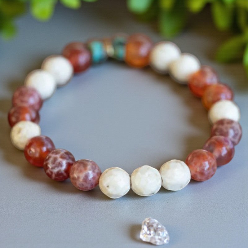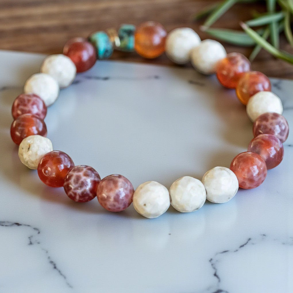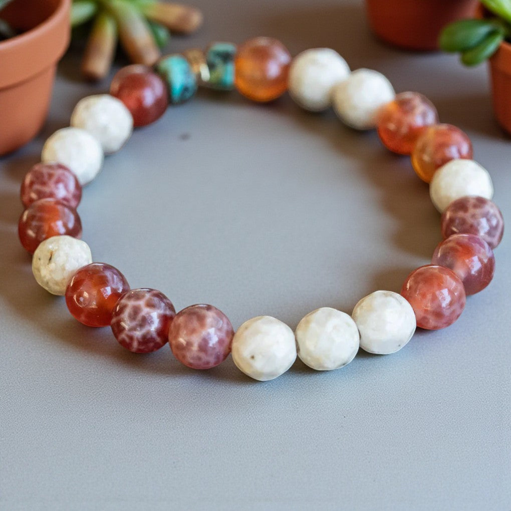 Harmony of Fire and Earth: Fire Agate, Riverstone, and Turquoise Bracelet