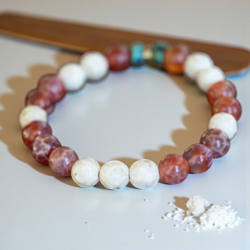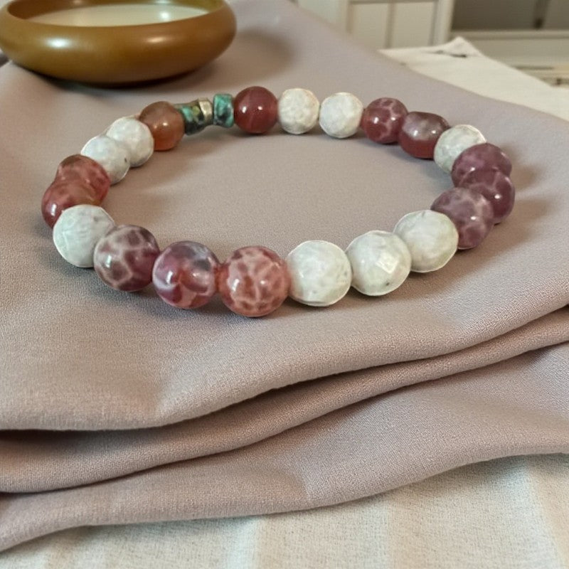 Elevate your jewelry collection with our Fire Agate, Riverstone, and Turquoise Bracelet—a striking piece that seamlessly merges style with spiritual depth. Perfect for the contemporary woman who values both aesthetics and meaning, this bracelet transcends mere adornment to reflect your inner beauty and resilience. Secure yours today and bask in the harmonious energies of riverstone, fire agate, and turquoise.