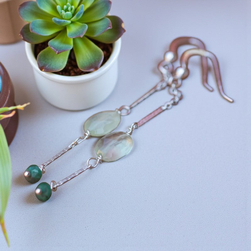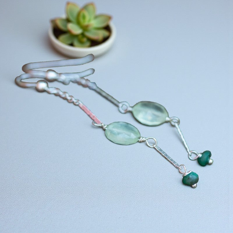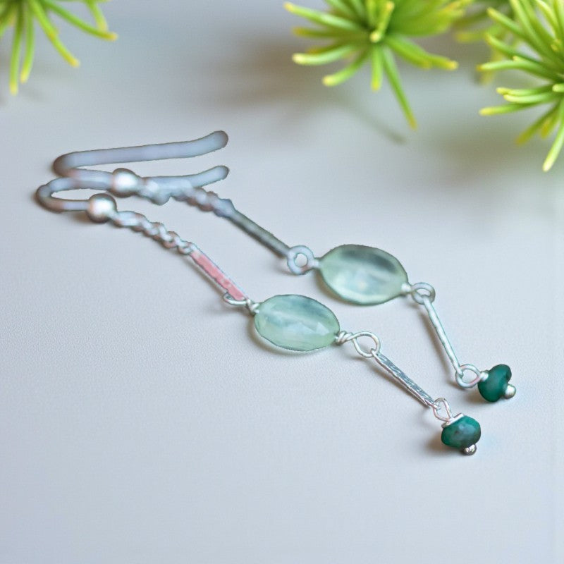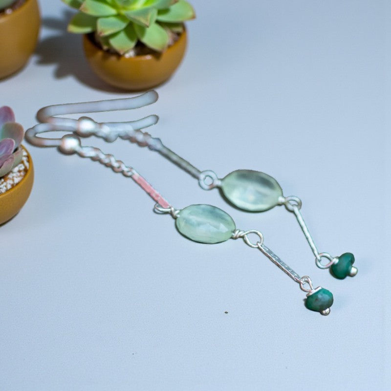 Harmony's Embrace: Prehnite and Emerald Silver Dangle Earrings