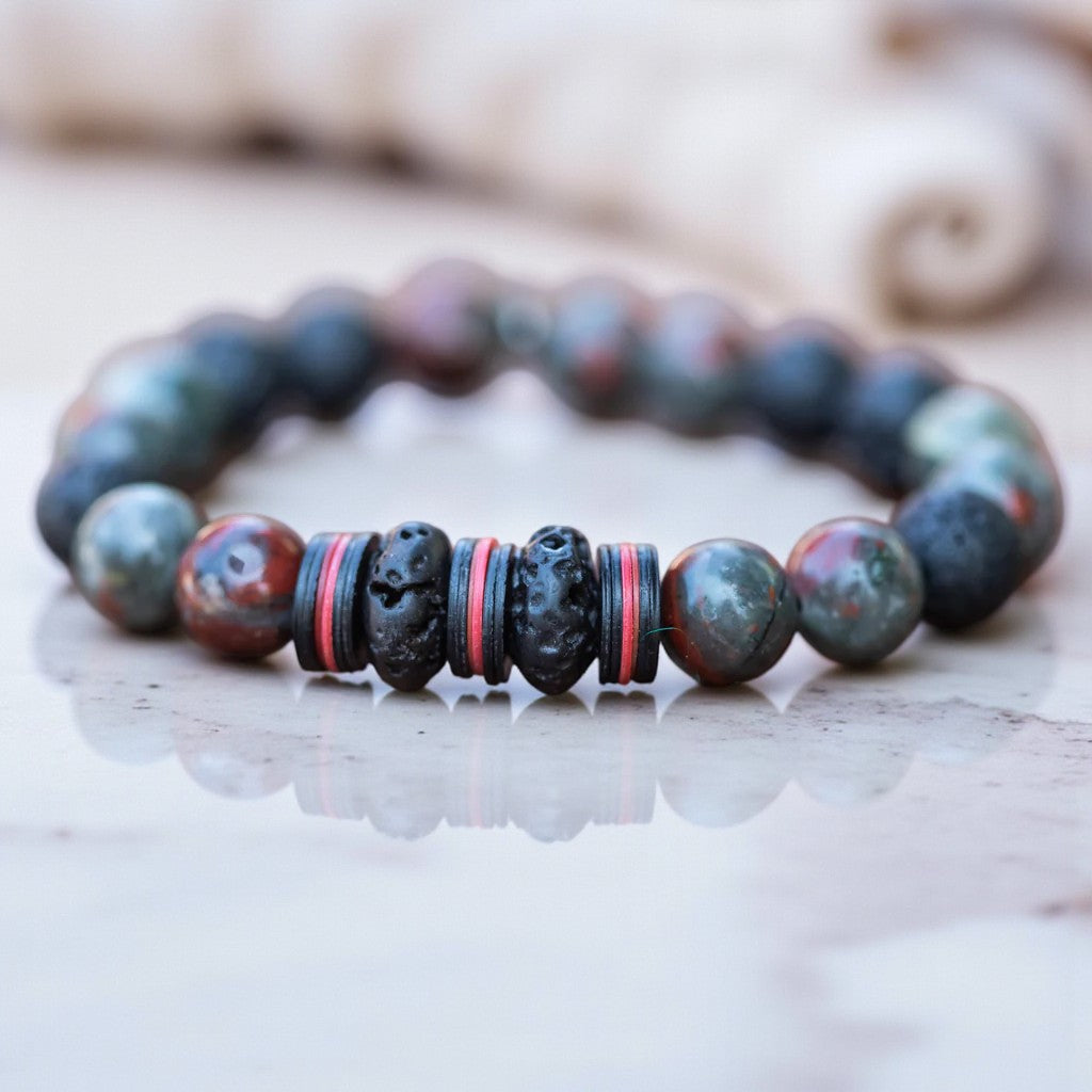 Ignite Your Spirit: Men's Bloodstone and Black Lava Rock Beaded Stacking Bracelet