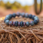 The striking black and red vintage record vinyl spacers serve as captivating focal points in this bracelet. Beyond its aesthetic allure, this stackable piece exudes remarkable healing and spiritual virtues. Pair it with any boho bracelet from our men's collection to bask in admiration and positive energy.