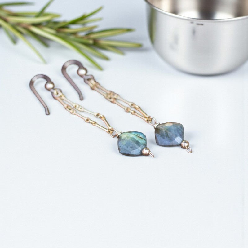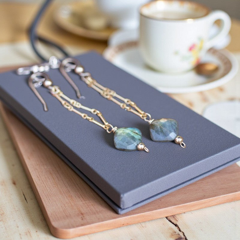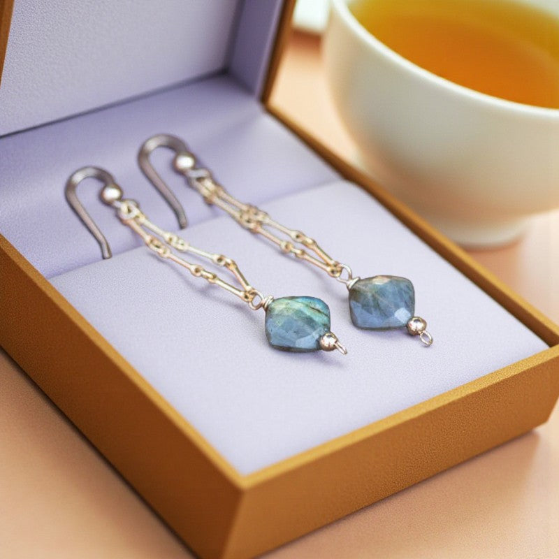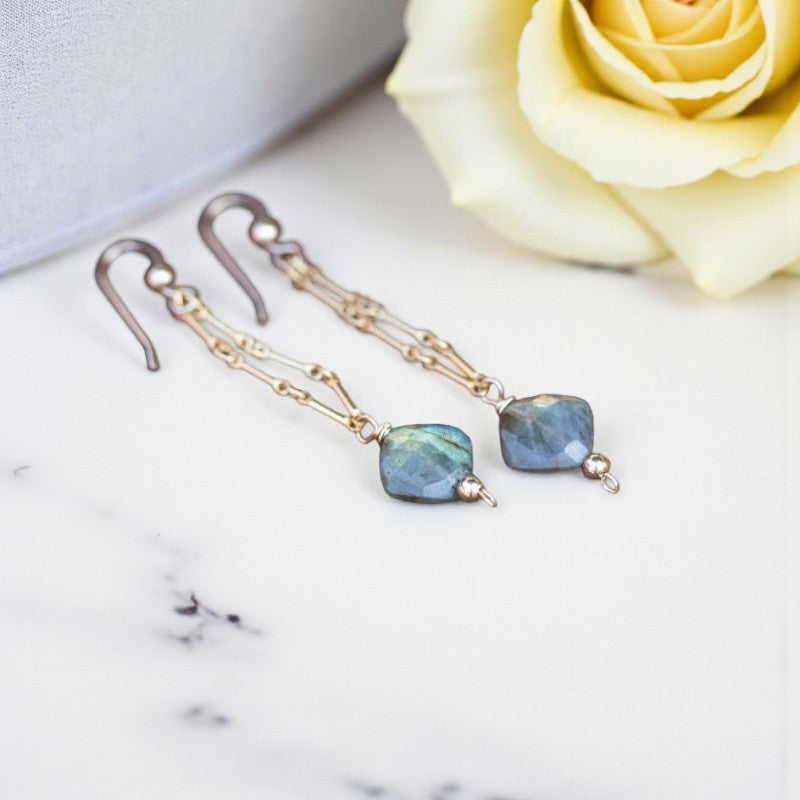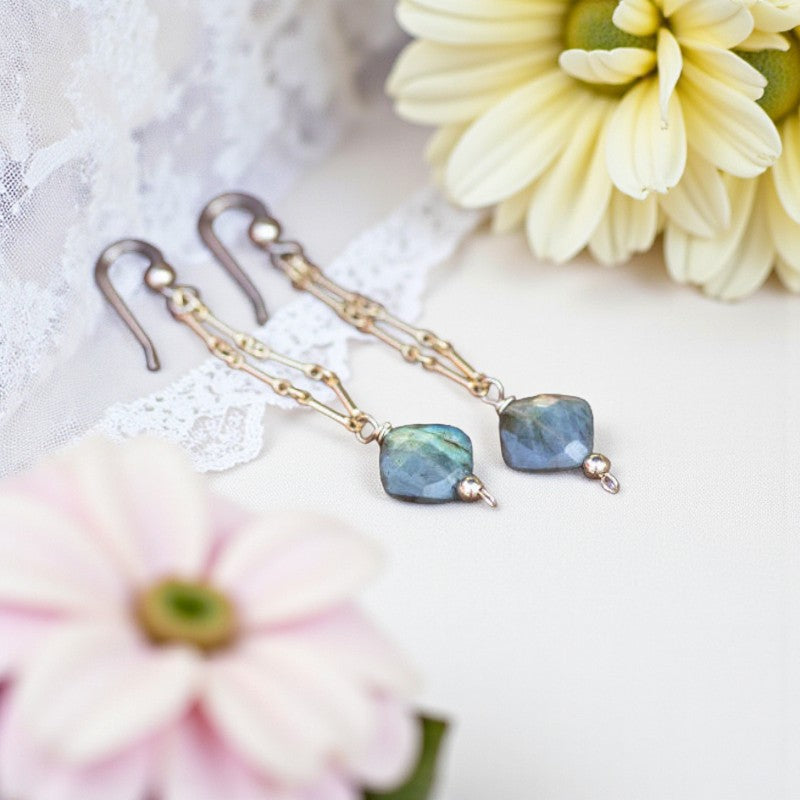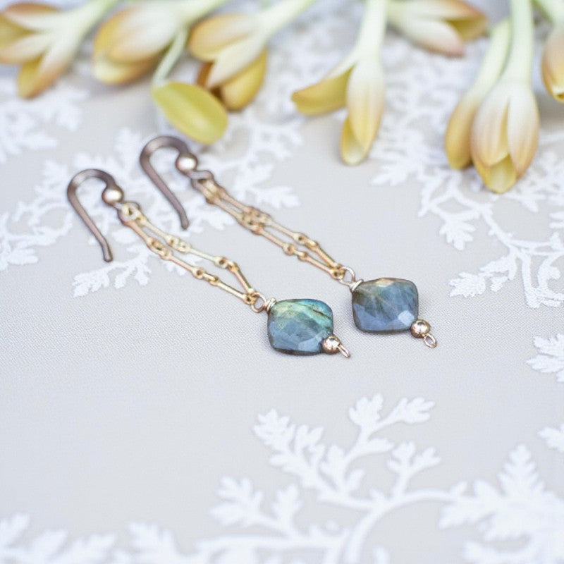 Illuminate Your Inner and Outer Beauty: Labradorite Gold Bar Chain Earrings