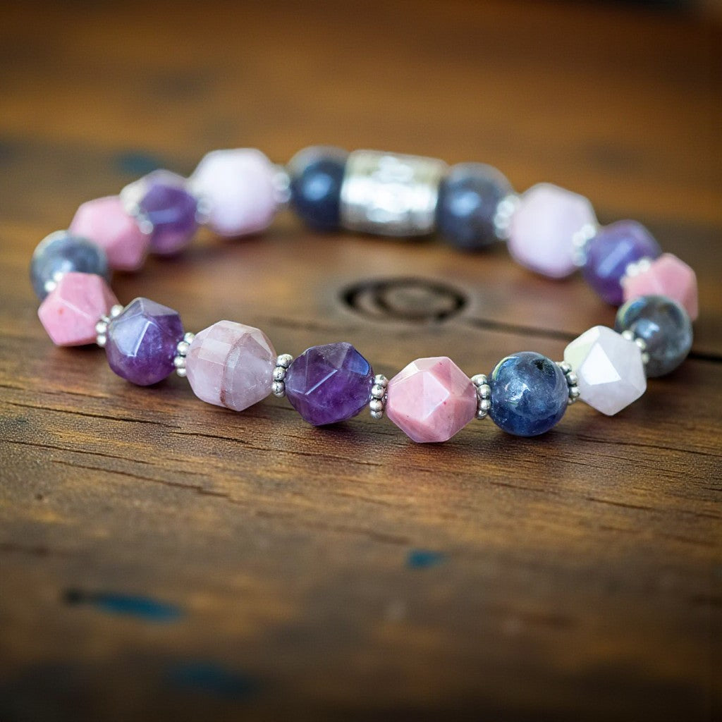 Illuminate Your Spirit: Iolite, Amethyst, Kunzite, Rhodonite Energy Infusion Bracelet