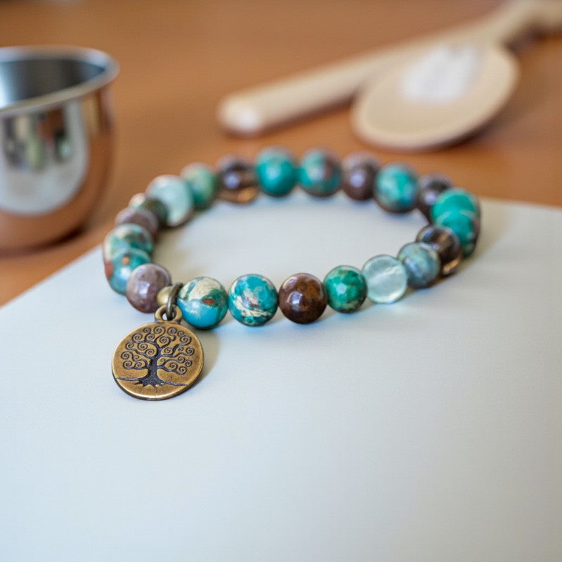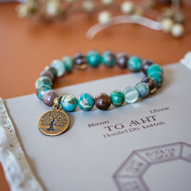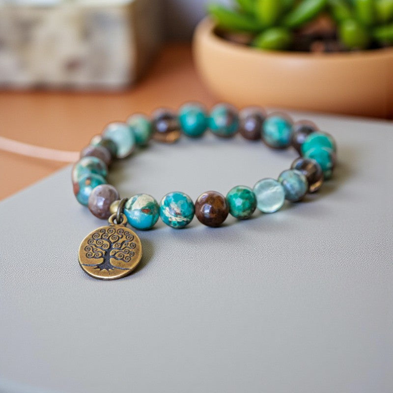 The exquisite bronze tree of life charm adds a final touch of elegance to this bracelet, making it an ideal gift choice for a cherished friend or family member. Prepare to embark on a transformative journey with this remarkable adornment by your side.