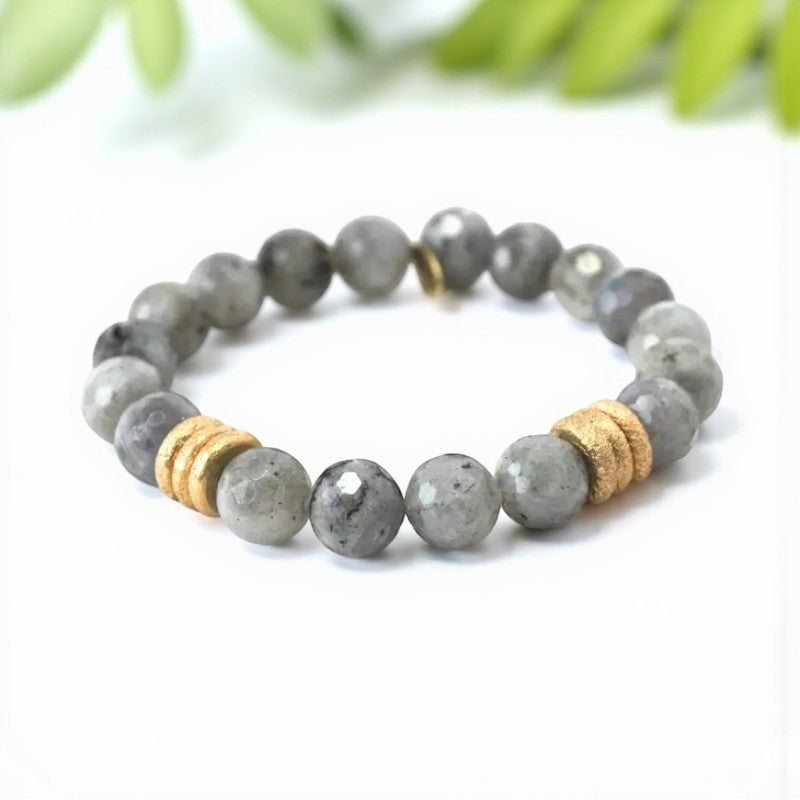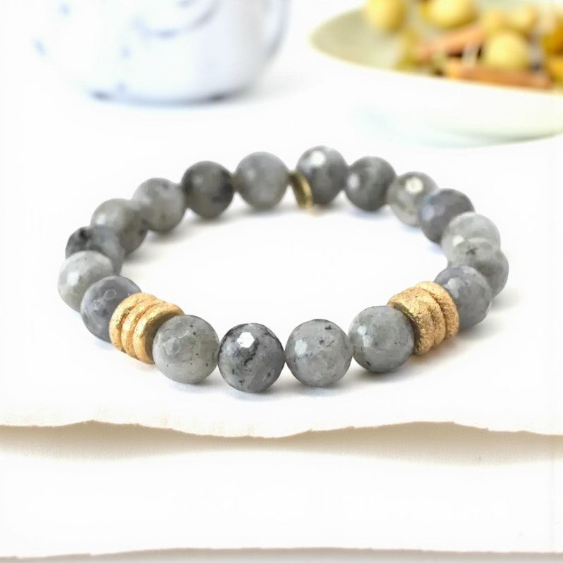 Labradorite Bracelet | Gray Faceted Stones with Gold Accents