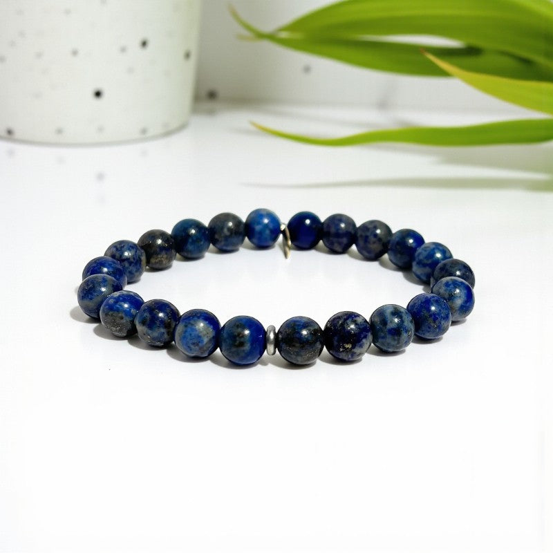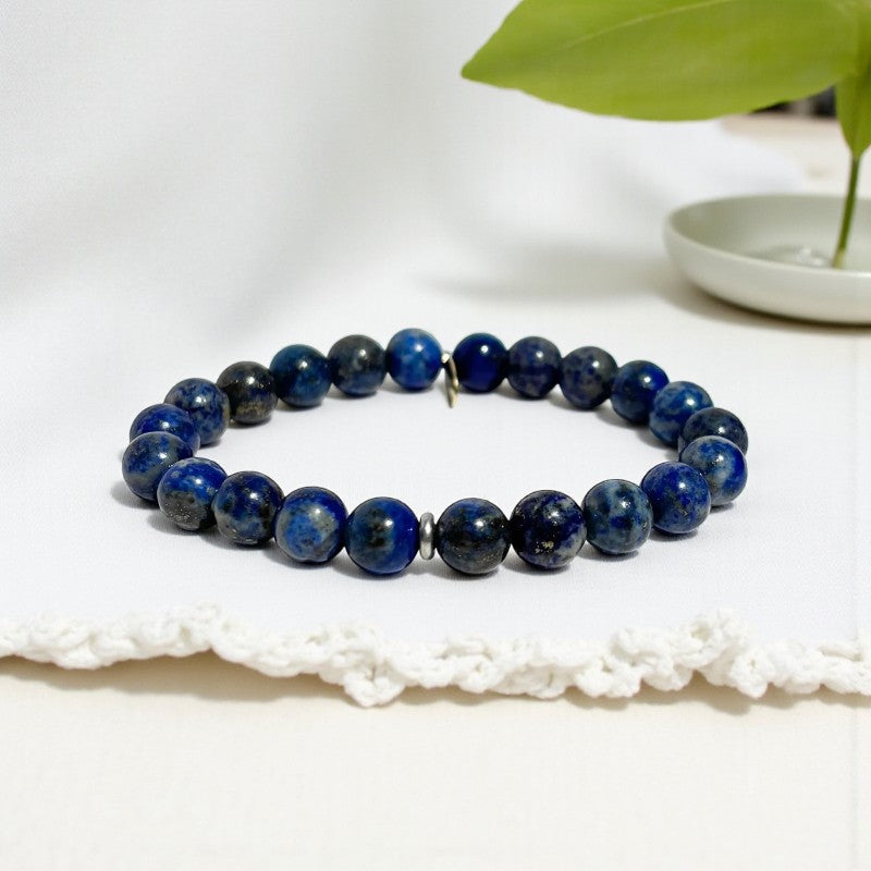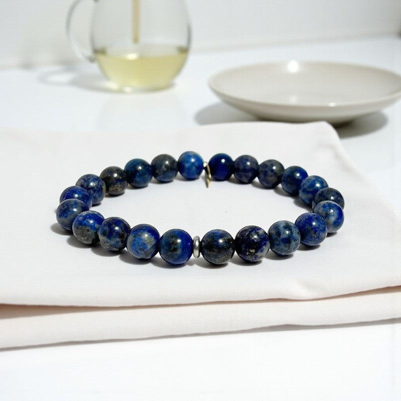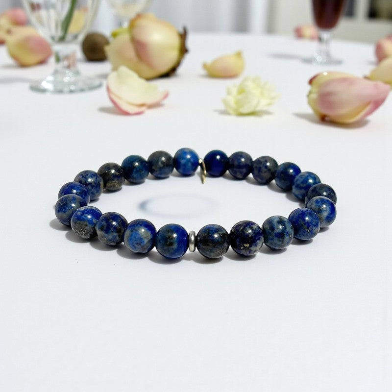Distinguished by its deep blue hue and radiant golden flecks of pyrite, Lapis Lazuli stands out as a stone of protection and inner peace. Whether worn by men or women, this bracelet radiates compassion and provides a safe space for authentic emotional expression.
