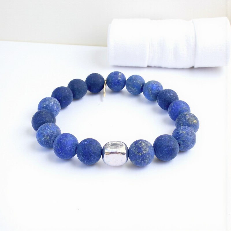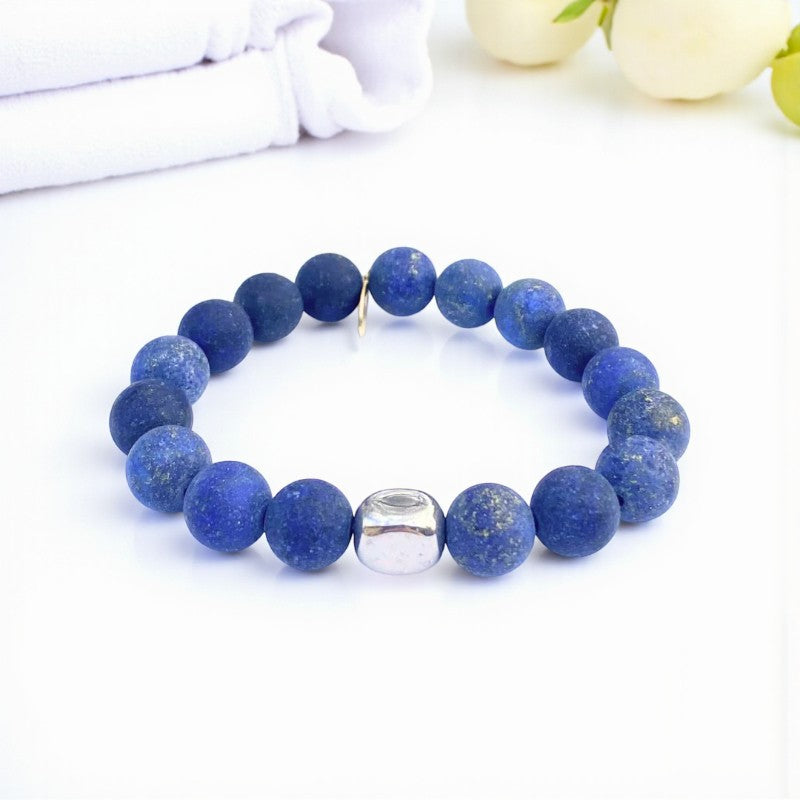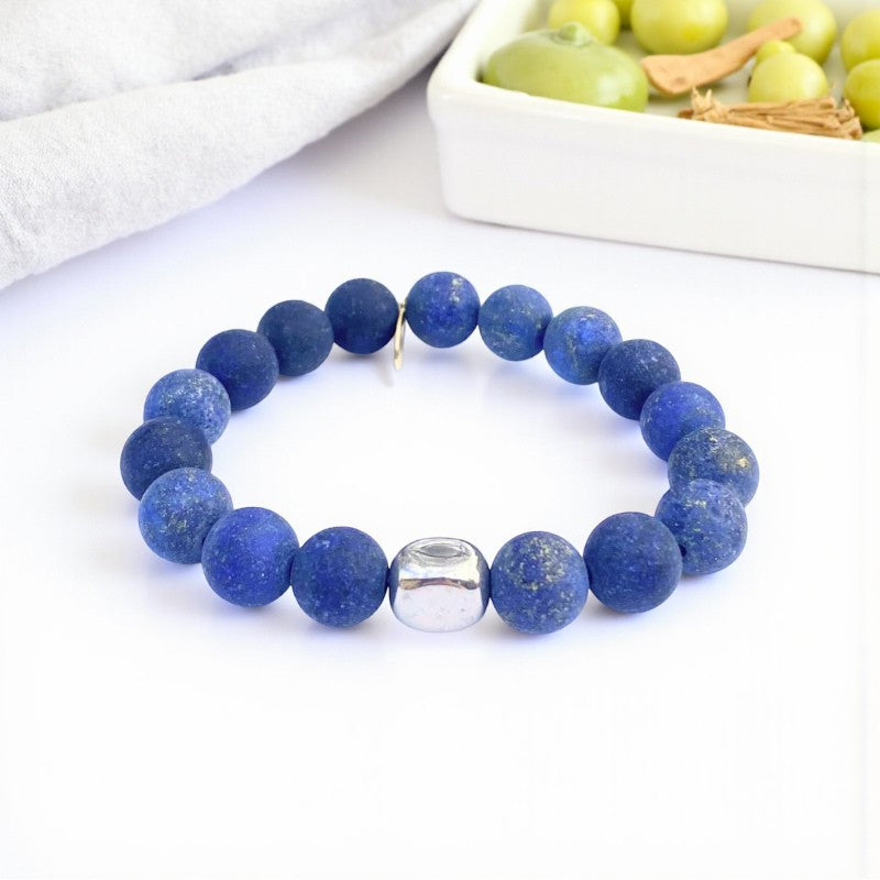 Lapis Lazuli Bracelet | Matte Finish with Platinum Hematite Center