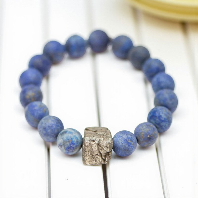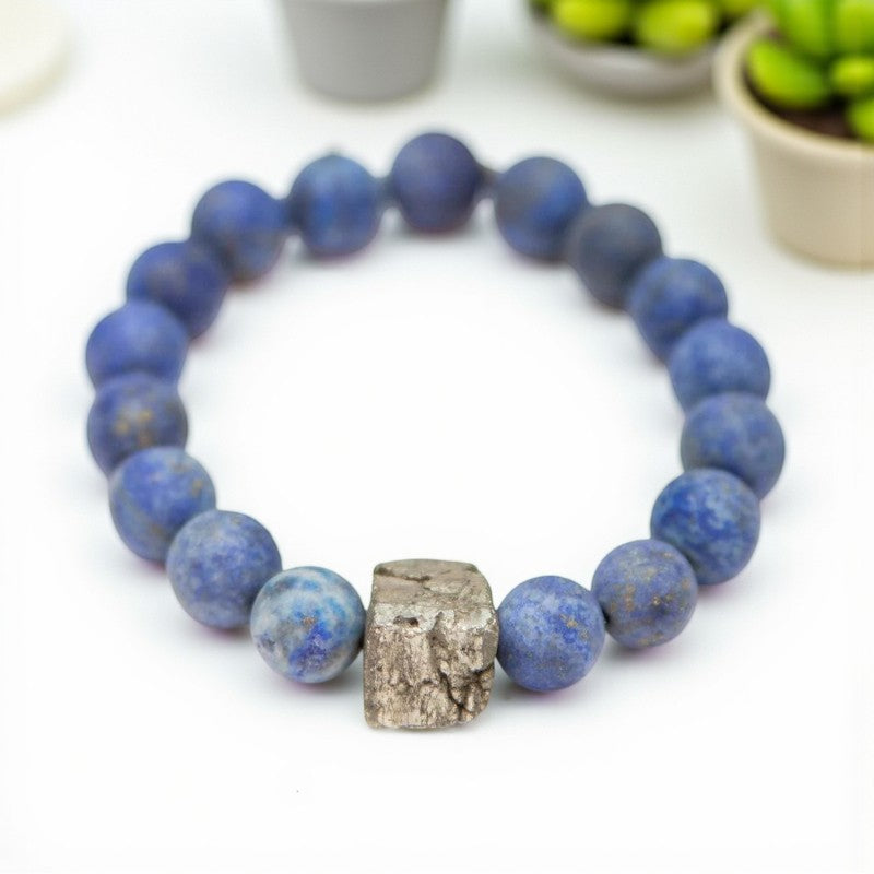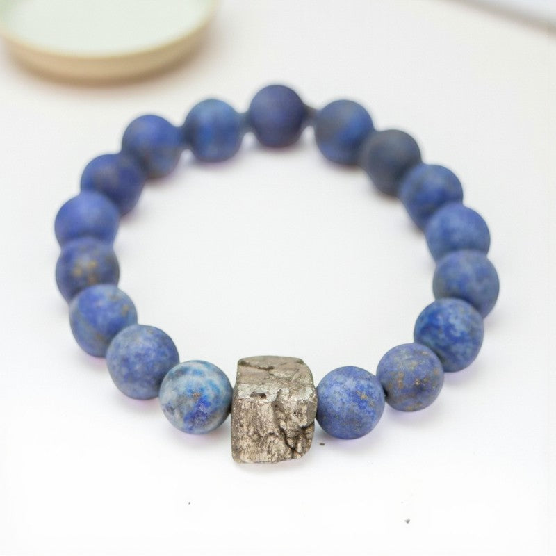Lapis Lazuli Bracelet | Matte Finish with Pyrite Center Stone