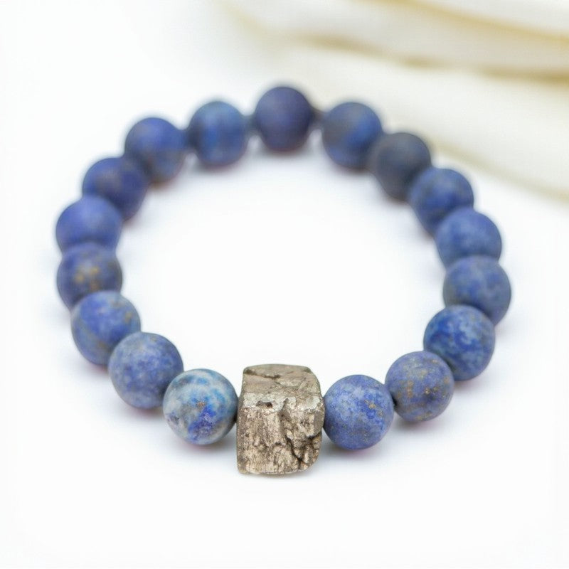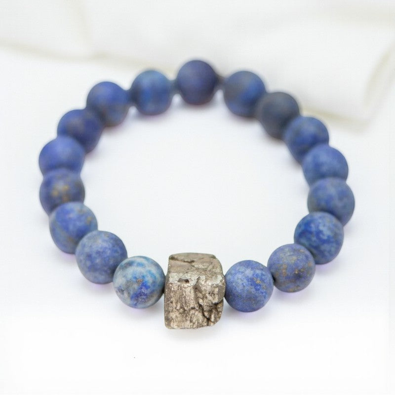 Distinguished by its golden pyrite flecks set against the deep blue backdrop of Lapis Lazuli, this bracelet serves as a beacon of protection, peace, and compassion. Whether worn by men or women, it radiates a sense of confidence and emotional depth, empowering individuals to express their feelings with authenticity and grace.