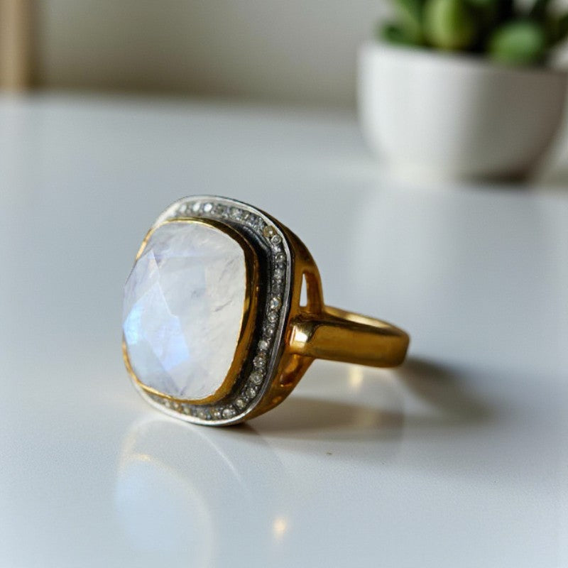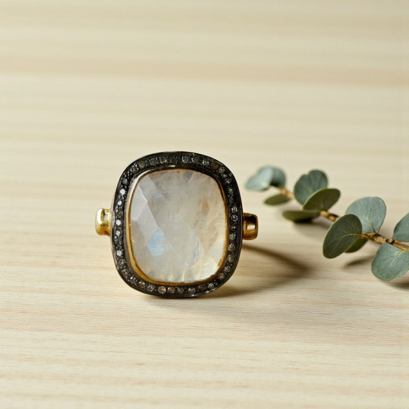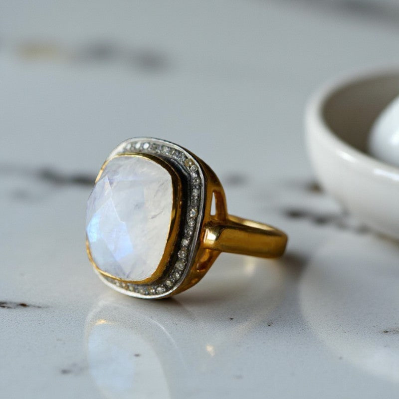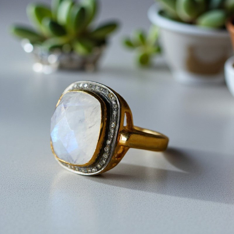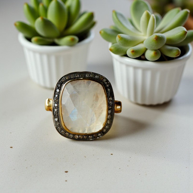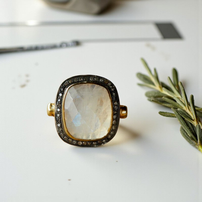 Lunar Elegance: Moonstone and Diamond - EXCLUSIVE Ring