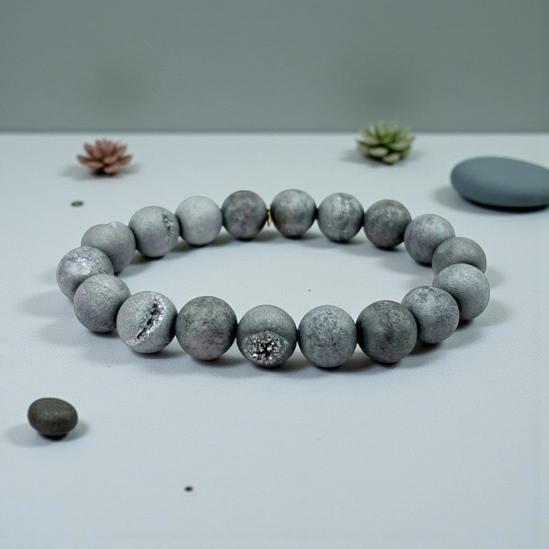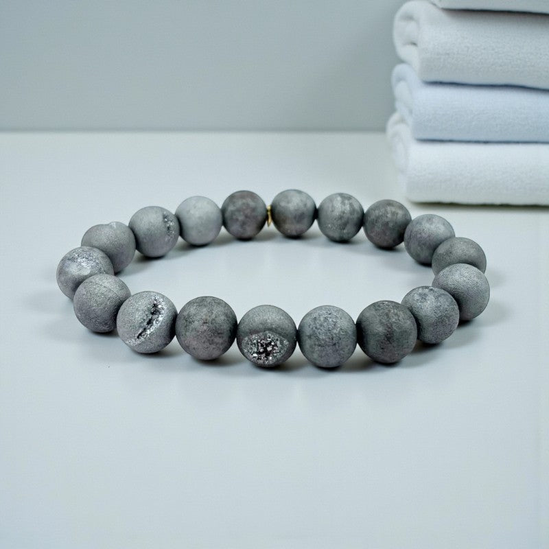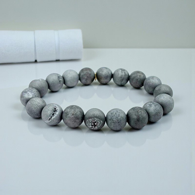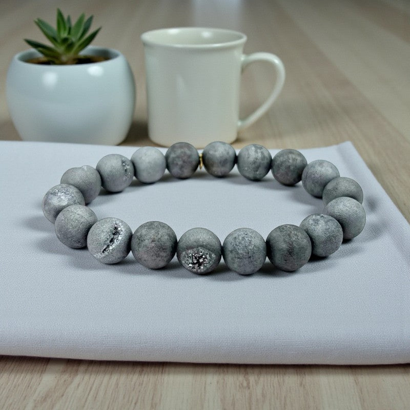 Matte Silver Druzy Quartz Bracelet with Subtle Sparkle