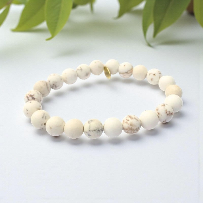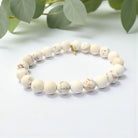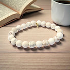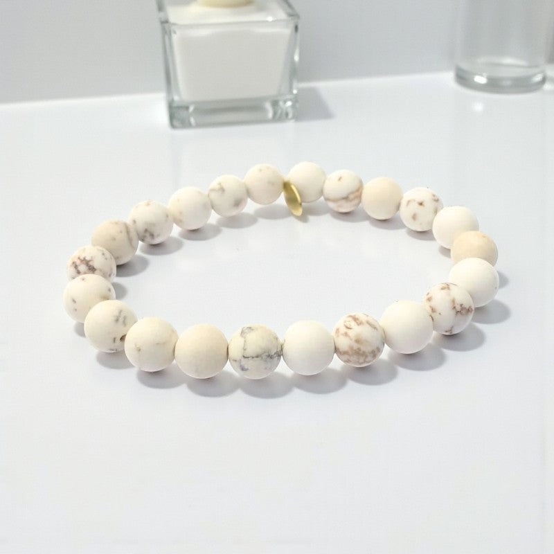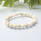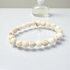 Experience the serene energies of the White Turquoise Bracelet, a beautiful accessory crafted with 8mm matte white turquoise beads. Designed to resonate with the Heart, Throat, and Third Eye Chakras, this bracelet offers a harmonious blend of purification, balance, and healing properties. Adorned with a natural gold Infinite Warrior charm, this bracelet is not only a stylish accessory but also a source of positivity, wisdom, and inner balance.