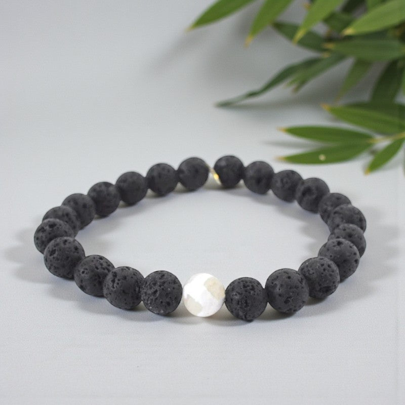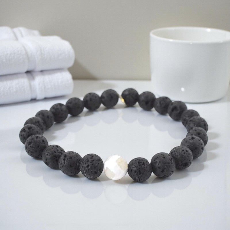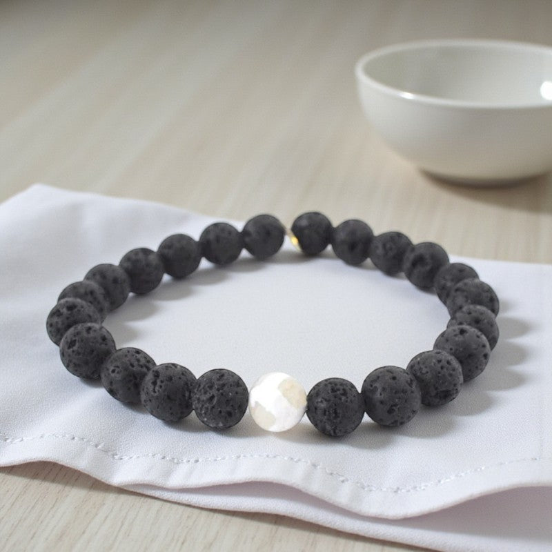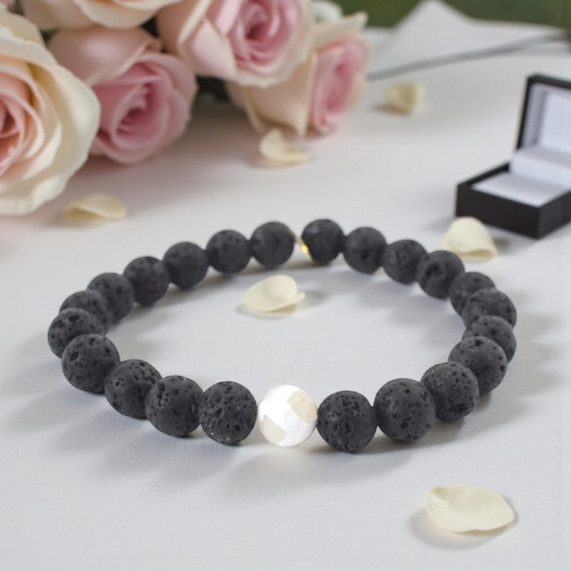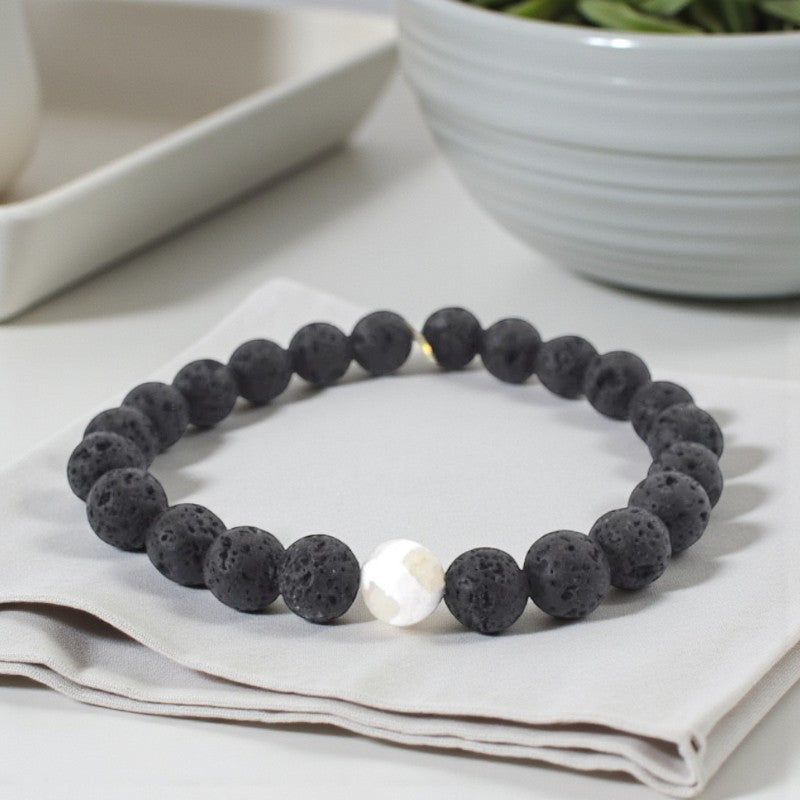 May Birthstone Bracelet: 8mm Agate and Lava Fusion