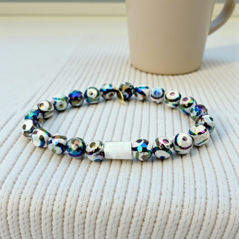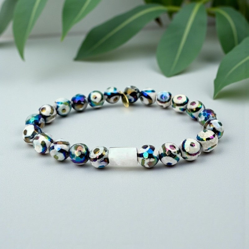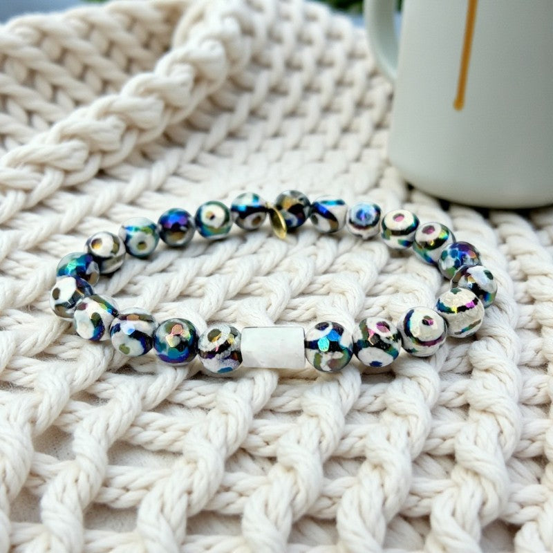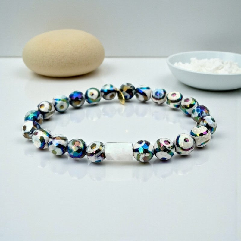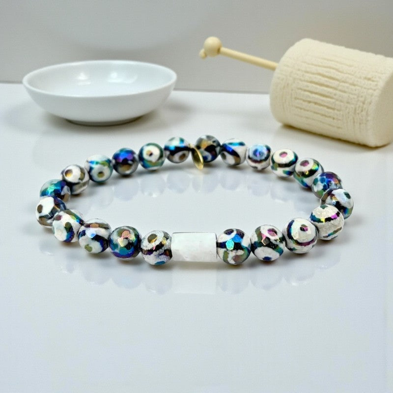 Moonlit Tibetan Agate Bracelet with Mystic Center Stone