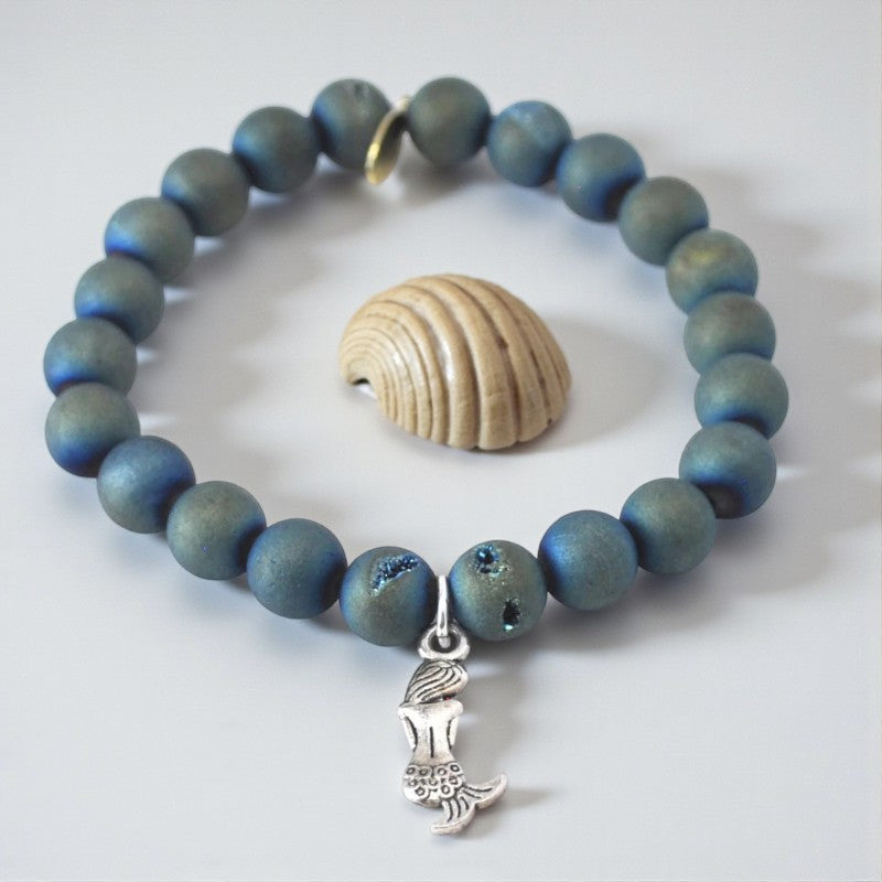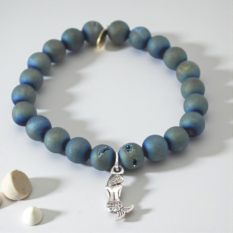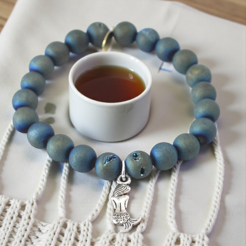 - **Recharging:** Re-energize your Blue Mermaid Matte Druzy Quartz bracelet by placing it in a window sill for 24 hours to absorb the revitalizing energies of the sun and moon.