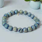 Embark on a journey of transformation with the enchanting Blue Mermaid Matte Druzy Quartz Bracelet. This exquisite accessory is crafted with 8mm blue mermaid matte druzy quartz beads, radiating energies of joy, balance, and self-discovery. Adorned with a natural gold Infinite Warrior charm, this bracelet serves as a symbol of protection, self-worth, and personal growth.