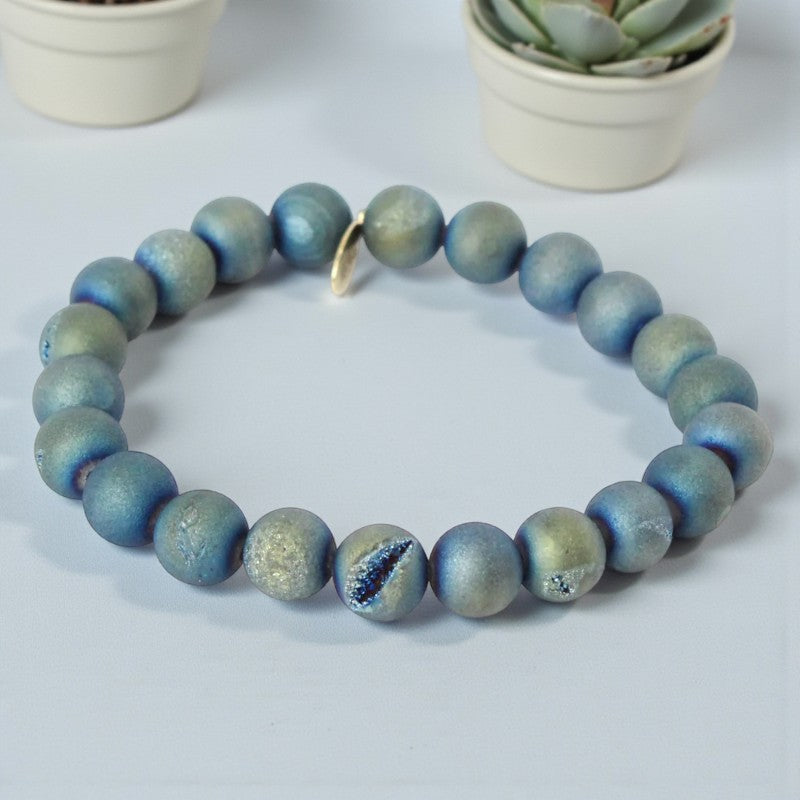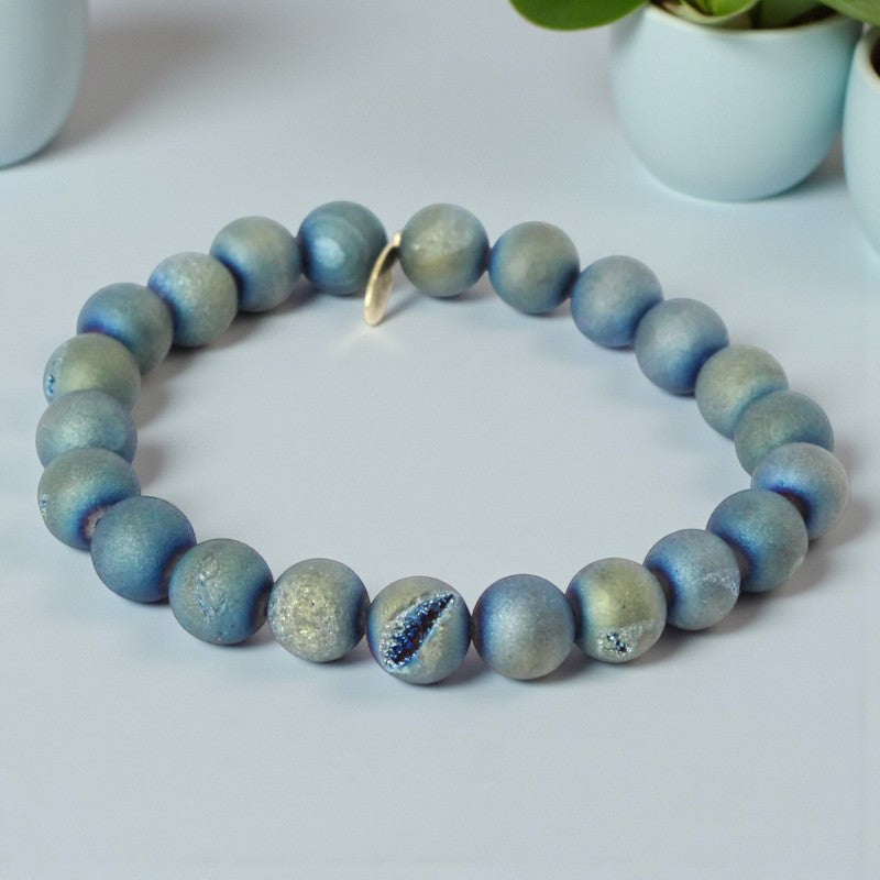 - Crafted with 8mm blue mermaid matte druzy quartz beads