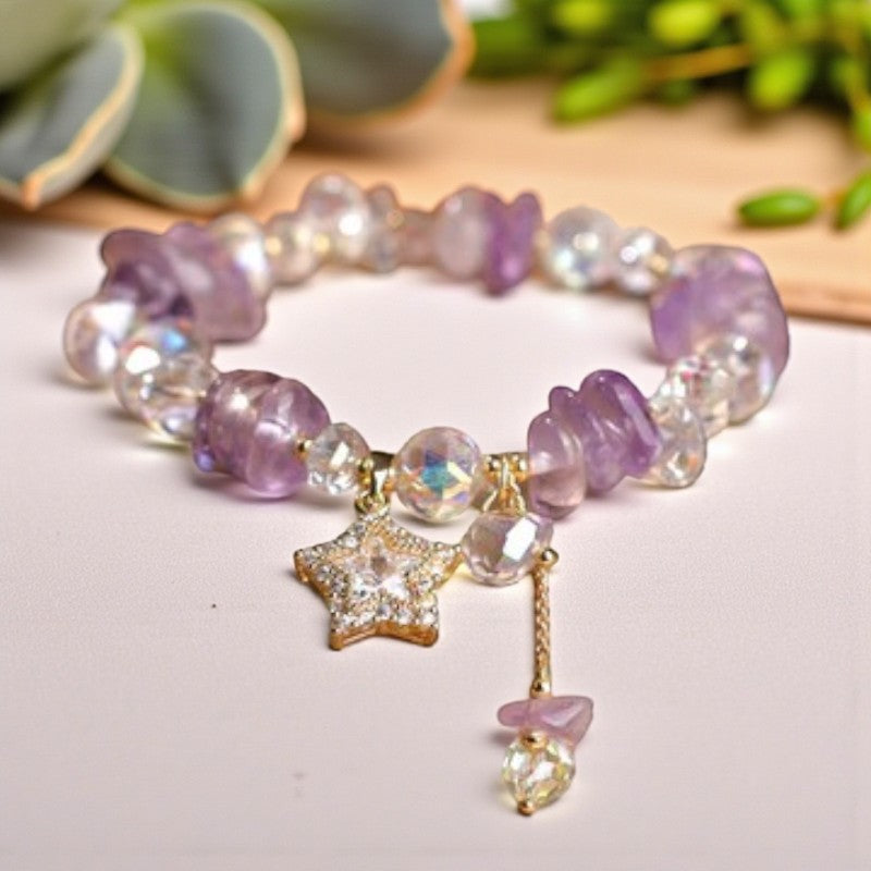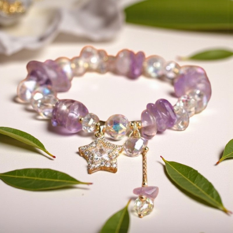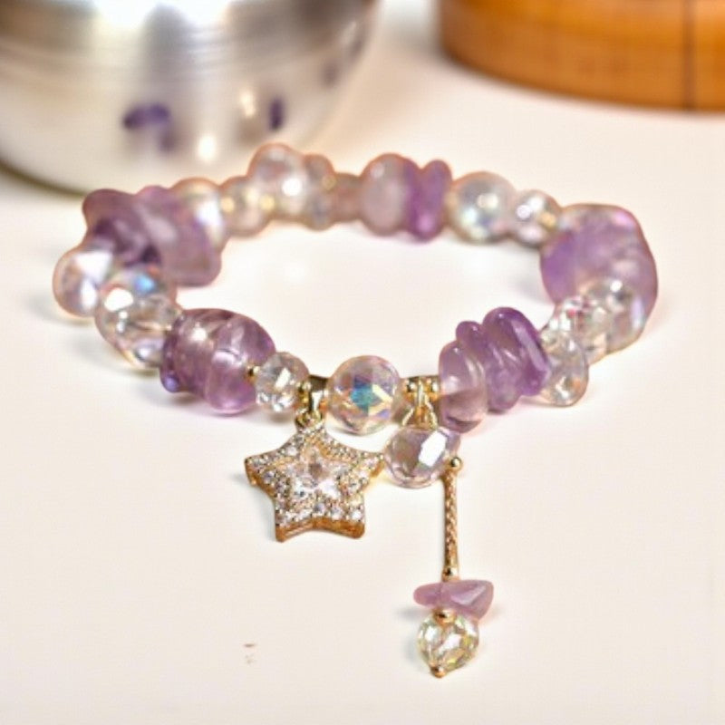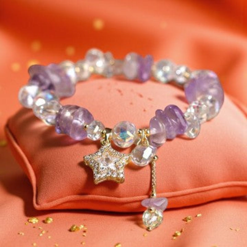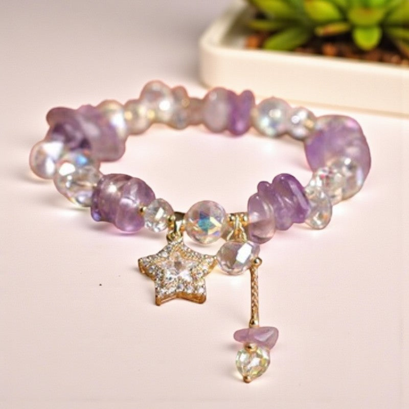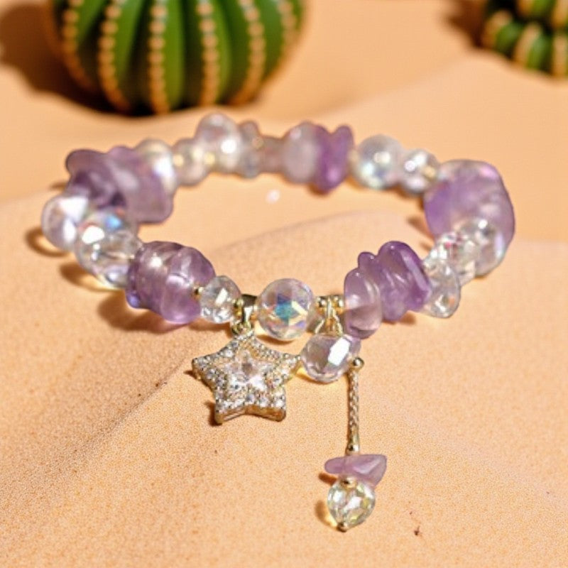 Natural Amethyst Crystal Star Charm Positive Transformation Bracelet