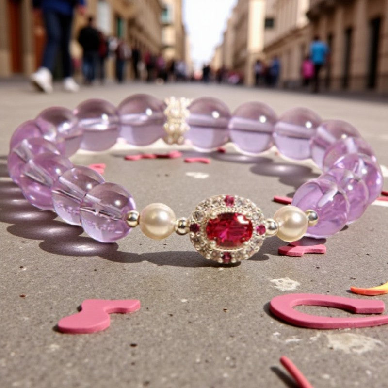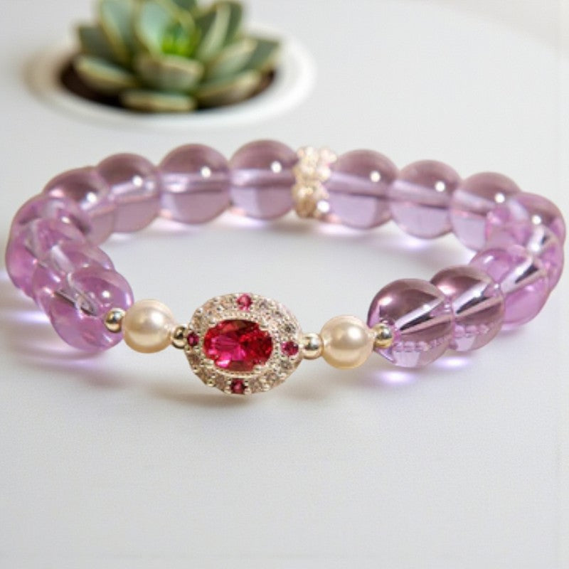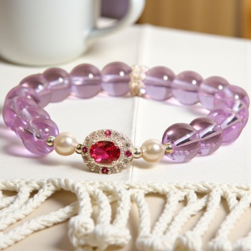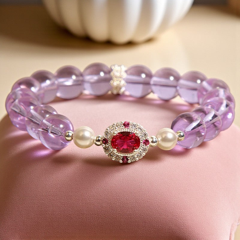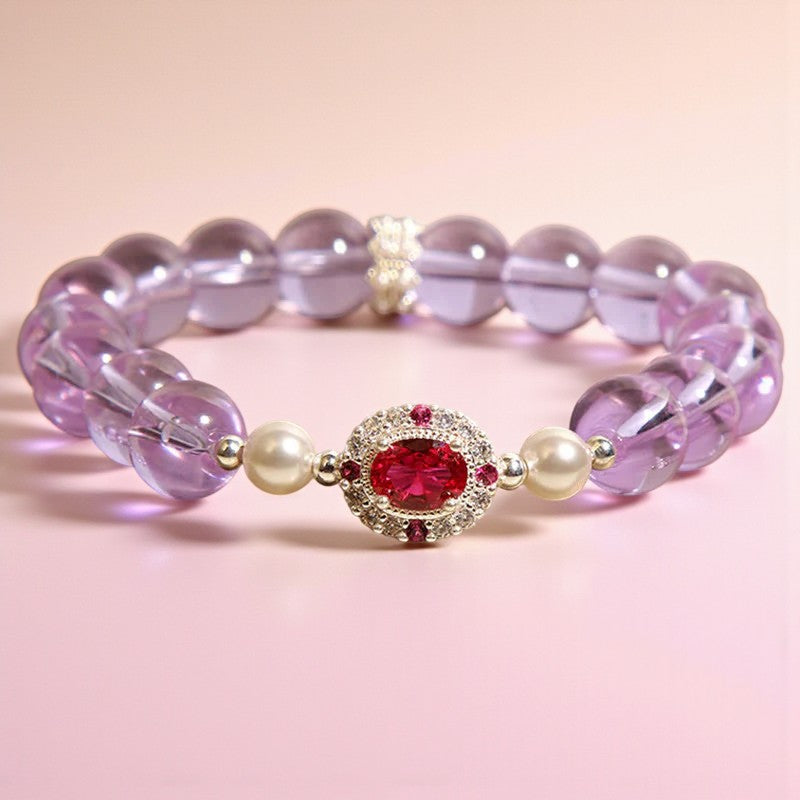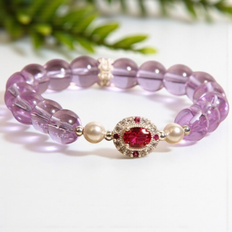 Natural Amethyst, Pearl, and Red Zircon Balance Bracelet