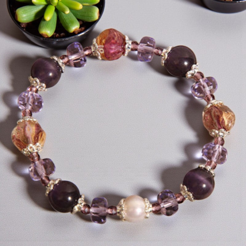 Natural Amethyst Pearl Crystal Harmony Bracelet
