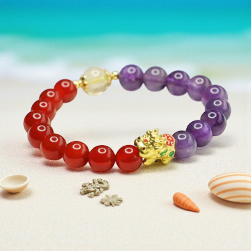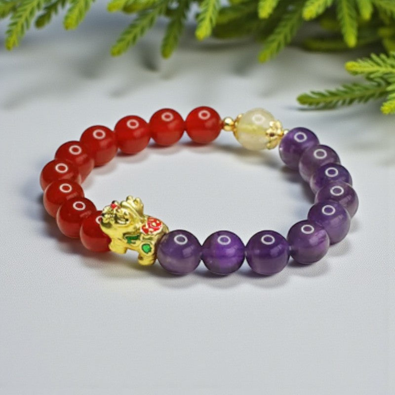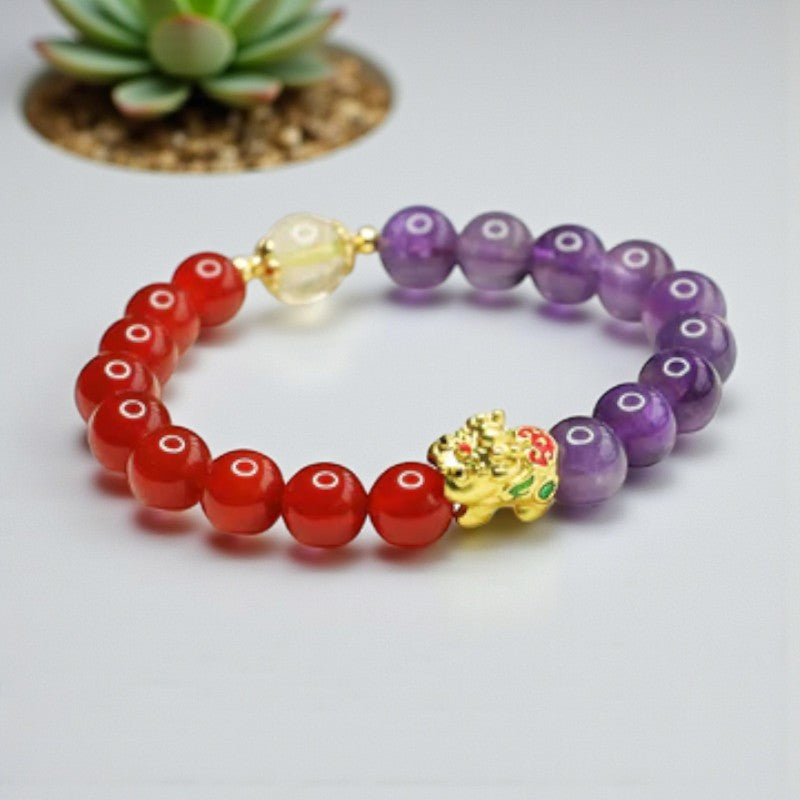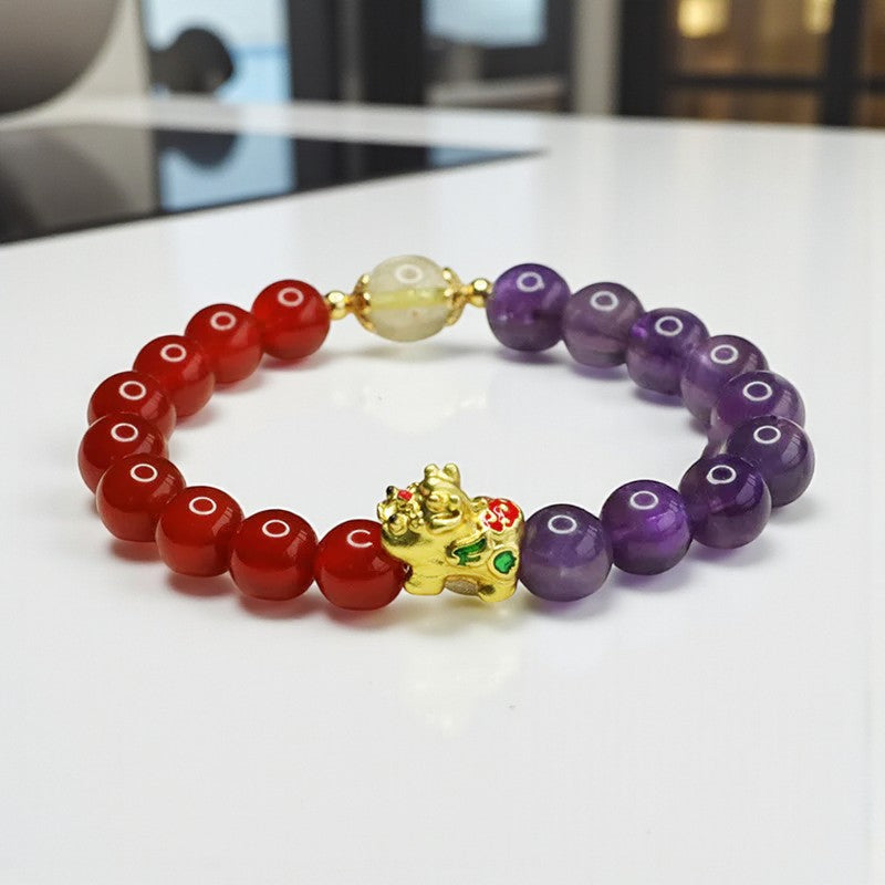Natural Amethyst Red Agate Pi Xiu Equilibrium Bracelet