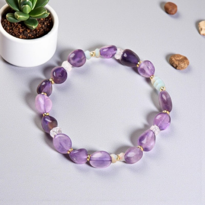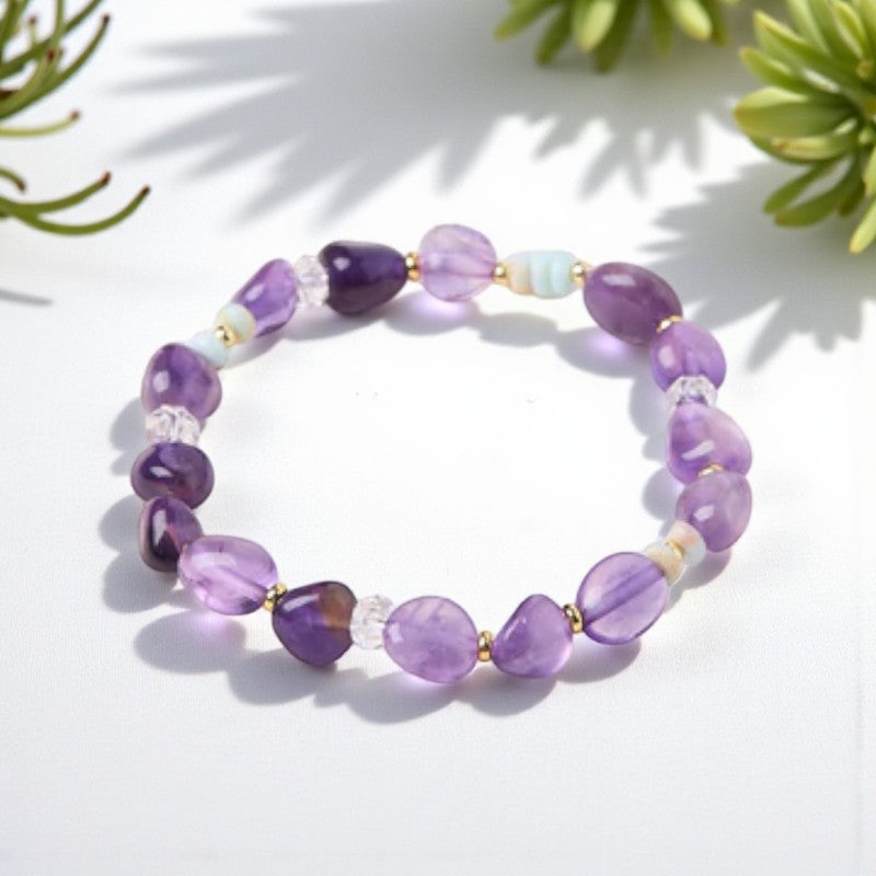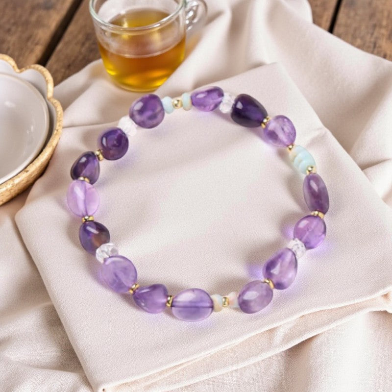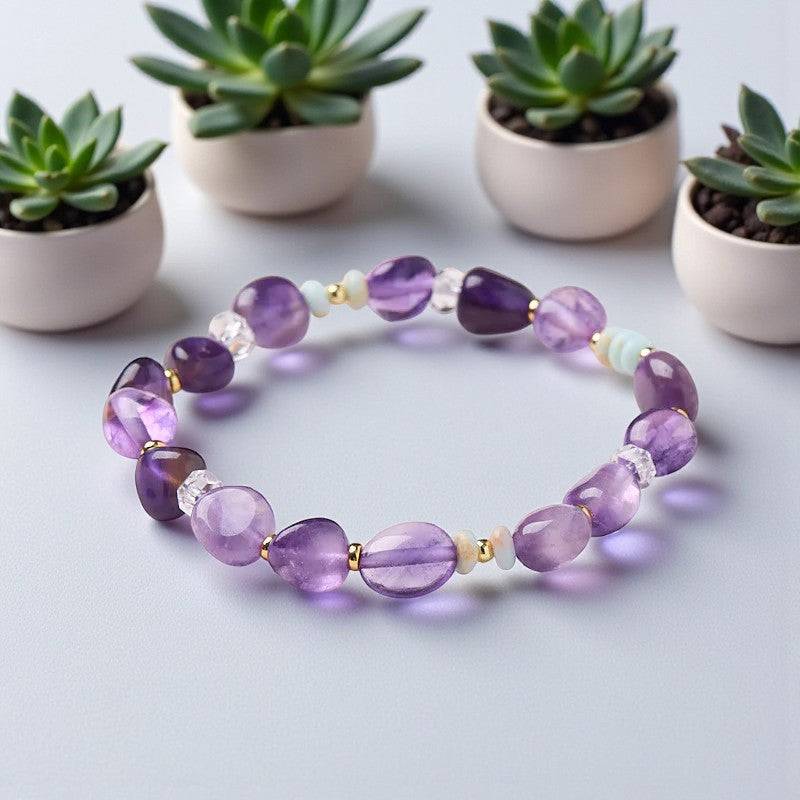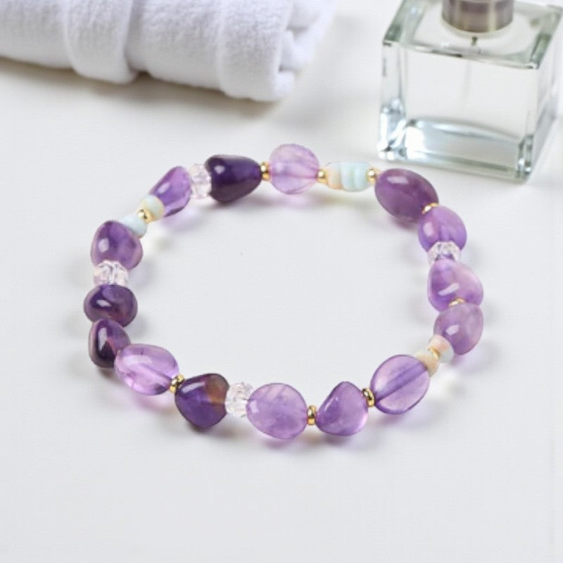 Natural Amethyst, Shoushan, and White Crystal Healing Bracelet