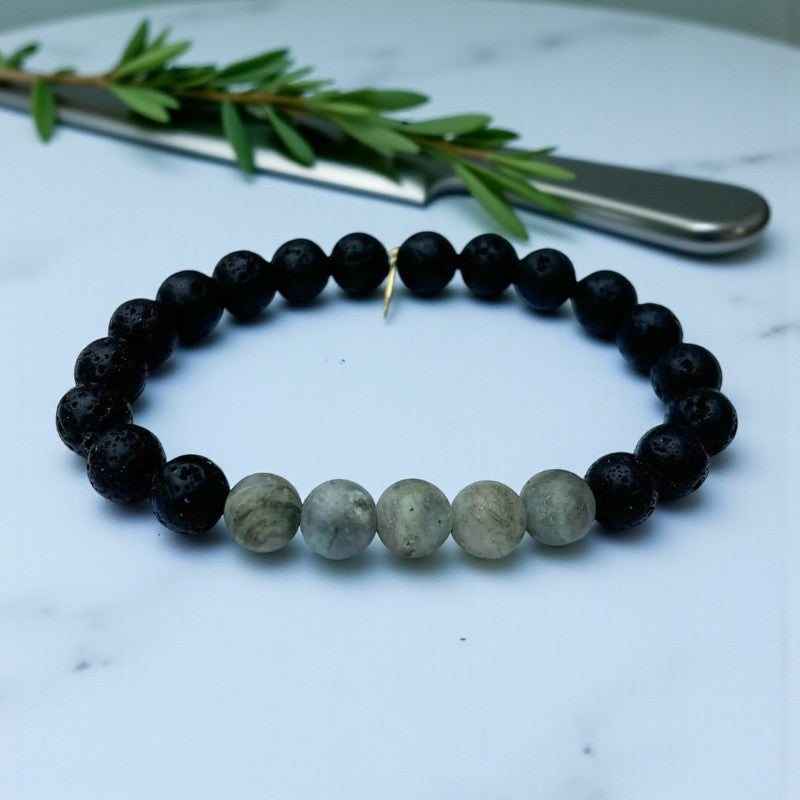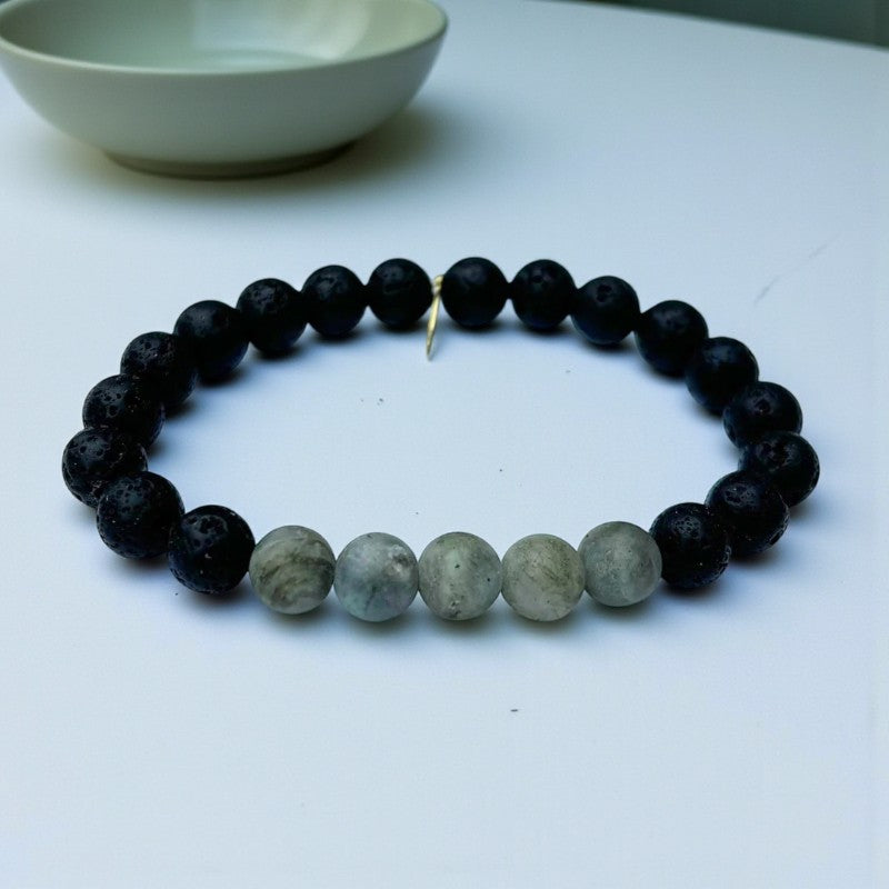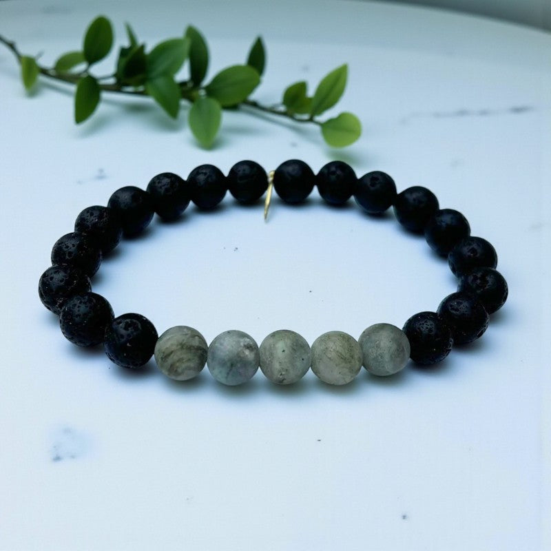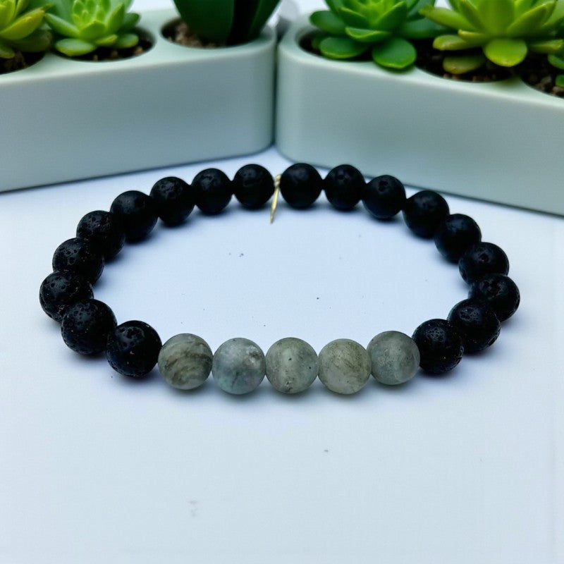 Embrace the magic of Labradorite and the grounding strength of Lava Stone, finding balance, protection, and inspiration in this exquisite bracelet that symbolizes resilience and transformation.