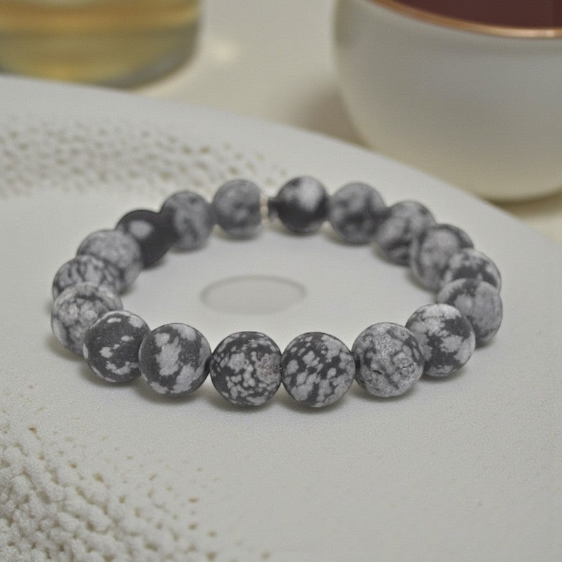 **Benefits of Matte Black Snowflake Obsidian Bracelet:**