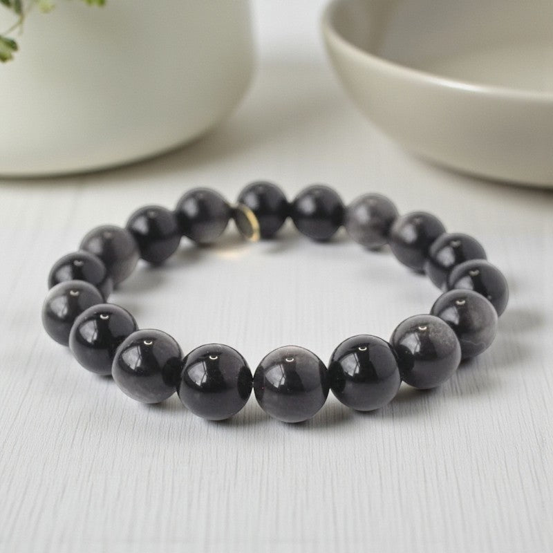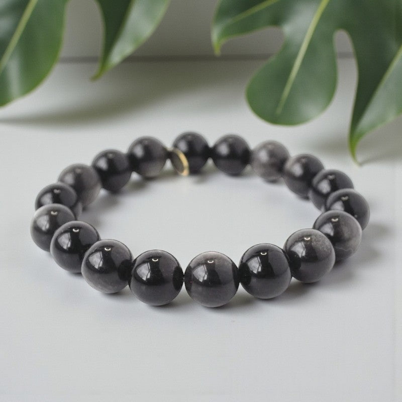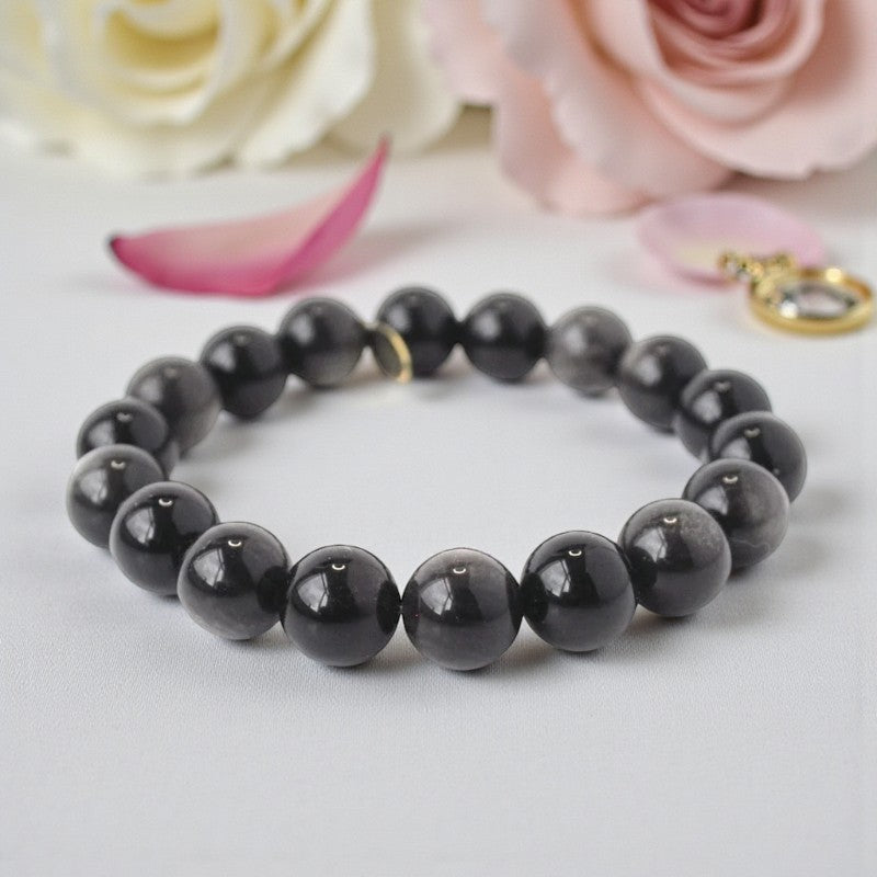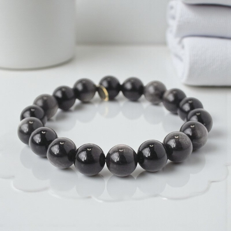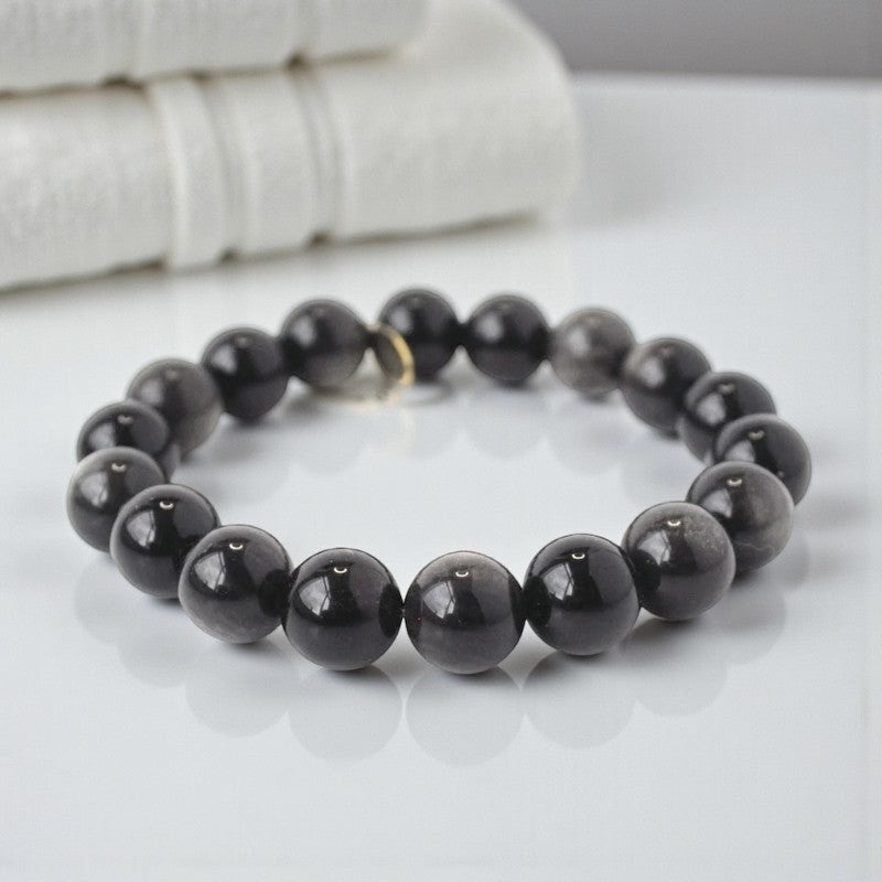Obsidian Crystal Bracelet with Silver Obsidian Detail