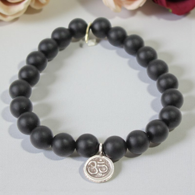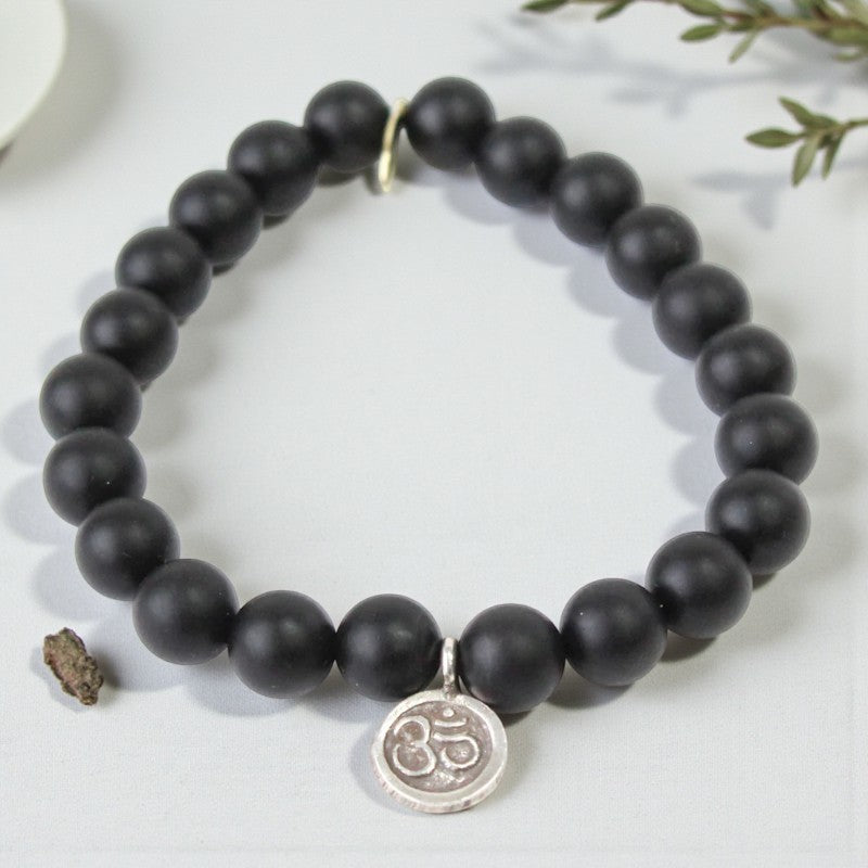- **Energetic Renewal:** Recharge the energies of your Matte Black Onyx Bracelet with Sterling Silver Om Charm every couple of weeks by placing it on a windowsill for 24 hours to absorb the revitalizing energies of the sun and moon.