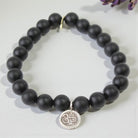 Experience a sense of inner power and tranquility with the Matte Black Onyx Bracelet featuring a sterling silver Om charm and a natural gold Infinite Warrior charm. Crafted with 8mm matte black onyx beads, this bracelet embodies qualities of stamina, vigor, and self-control, offering a grounding presence for those seeking stability and empowerment.