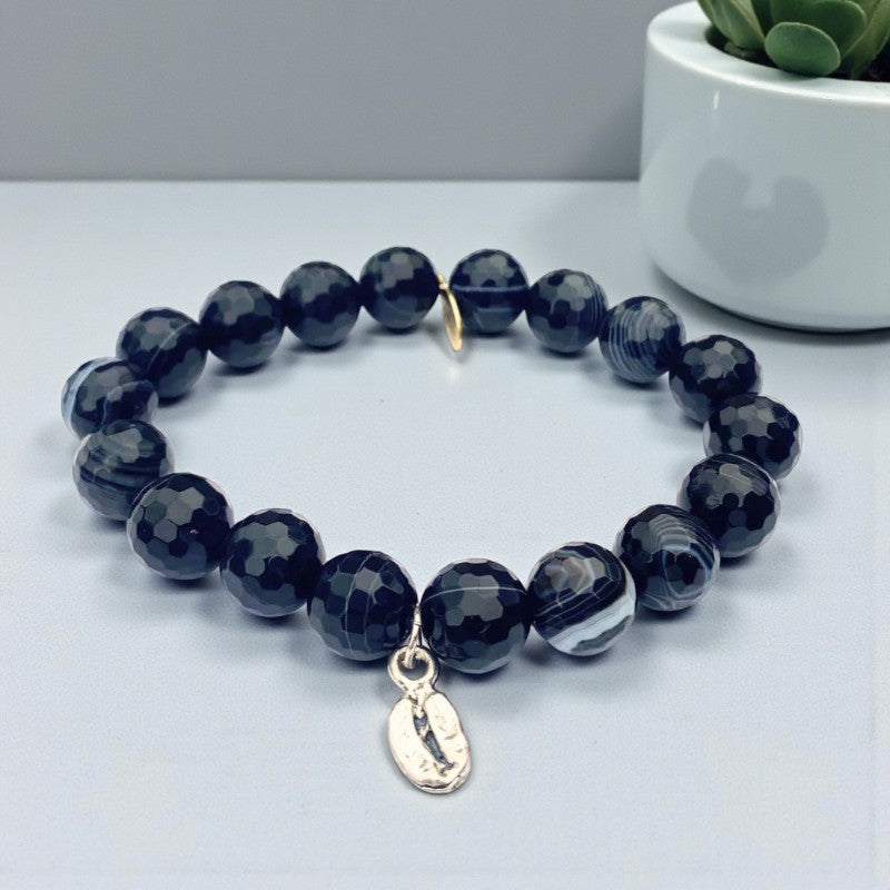 Obsidian Wristlet | Faceted + Sterling Silver Espresso Bean Dangle