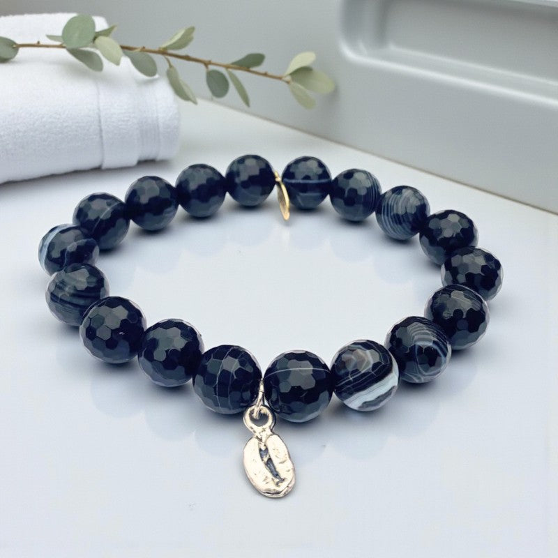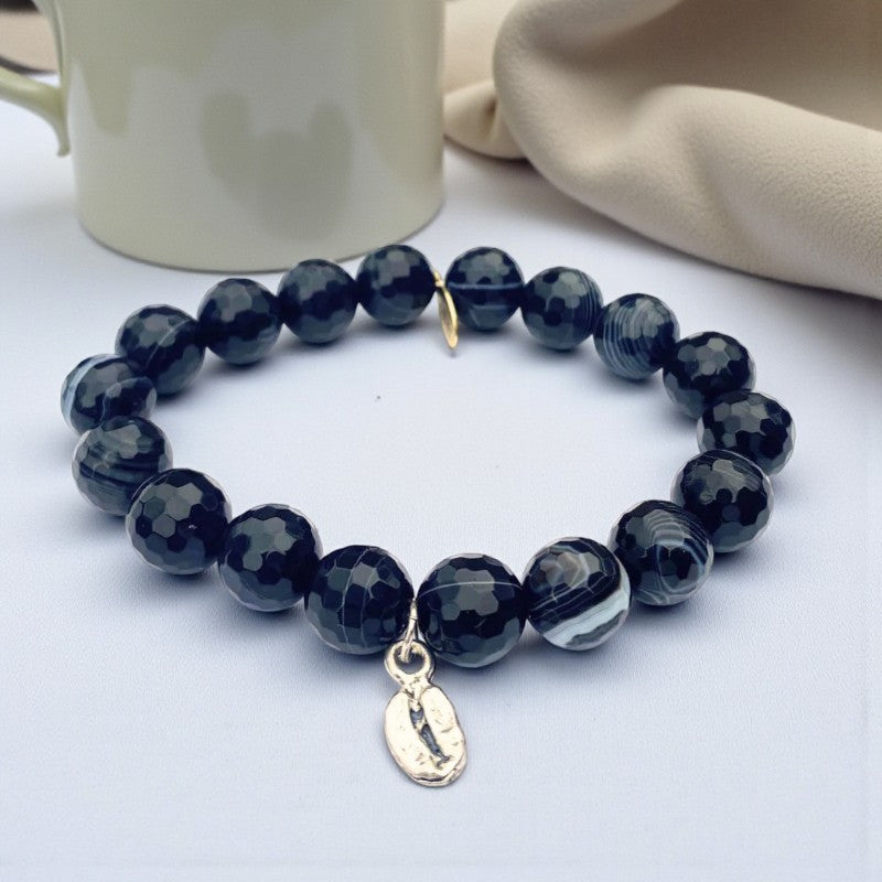 Adorn your wrist with the Black Onyx Bracelet featuring a Silver Coffee Bean Charm as a symbol of strength, resilience, and self-assurance. Let the grounding energy of Black Onyx guide you towards a sense of control, focus, and empowerment, helping you navigate life's challenges with grace and confidence, and reminding you of your innate strength and courage in the face of adversity.