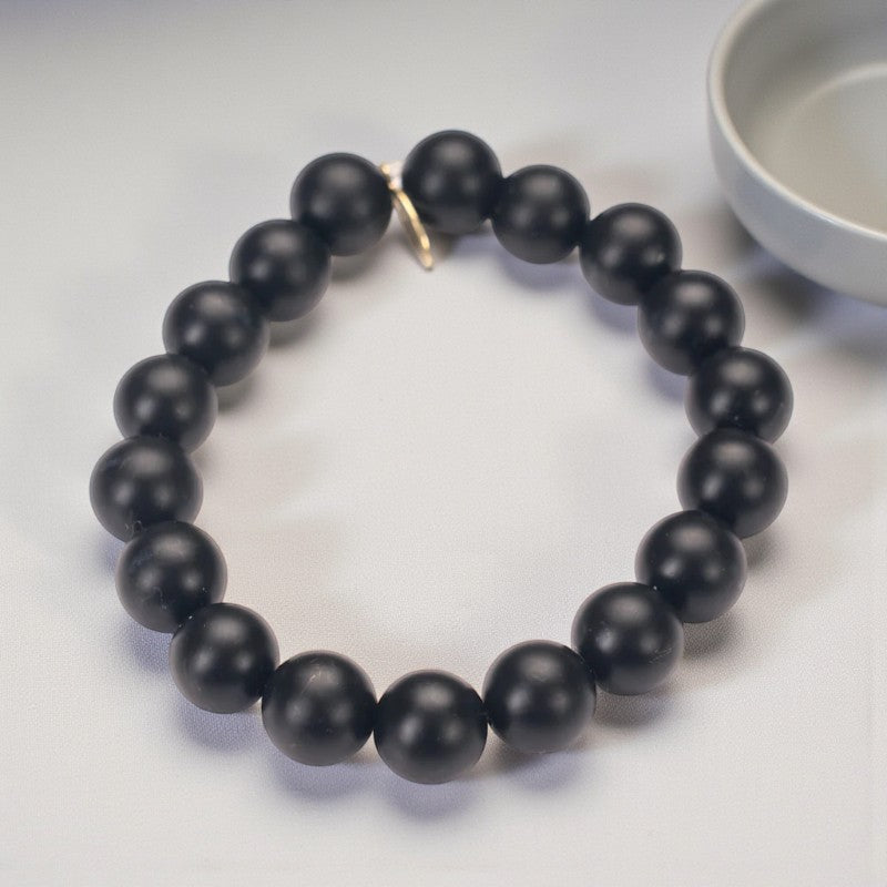 Adorn your wrist with the Matte Black Onyx Bracelet as a symbol of strength, resilience, and self-assurance. Let the grounding energy of Black Onyx guide you towards a sense of control, focus, and empowerment, helping you navigate life's challenges with grace and confidence. Wear this bracelet as a quiet reminder of your inner strength, courage, and resilience in the face of adversity, knowing that you are more powerful than you realize.