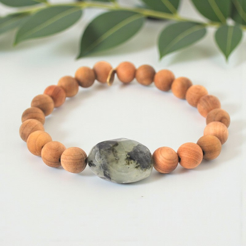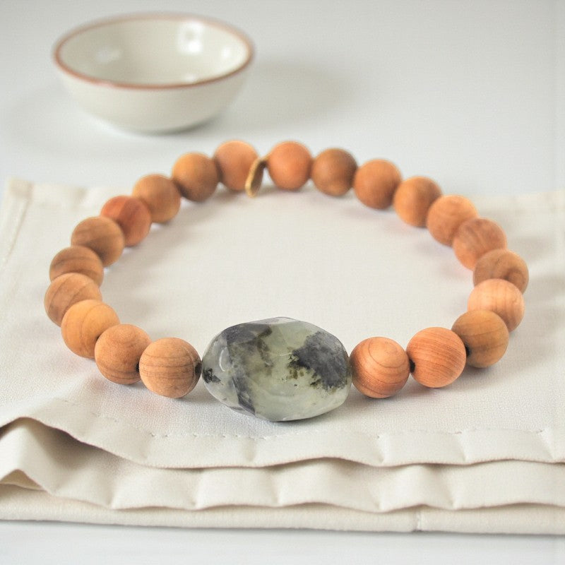 Prehnite Serenity | Sandalwood Essential Oil Diffuser Bracelet